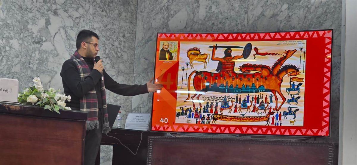 وتواصلت الجلسة بعرض قدمته الطالبة جنة محمود فتحي لجزء من السيرة الهلالية، أعقبه طرح بصري للباحث زياد أيمن حول استلهام السيرة في الفنون التشكيلية، مؤكداً دور التوثيق البصري في تعزيز حضور التراث.