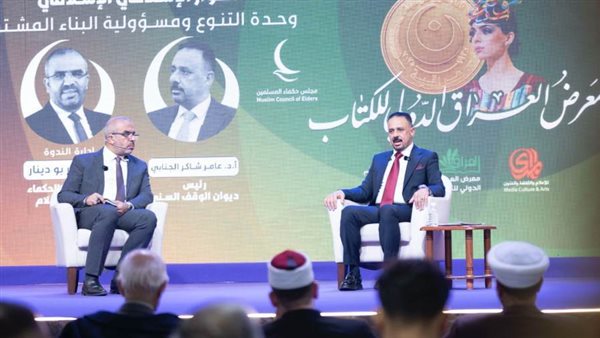 وسط حضور مكثَّف من شخصيات دينية وأدبية وأكاديمية.. نظَّم مجلس حكماء المسلمين ندوةً رئيسيَّة على مسرح الندوات الرئيسي بمعرض العراق الدولي للكتاب، تحت عنوان: “الحوار الإسلامي الإسلامي: وحدة التنوُّع ومسؤولية البناء المشترك”، بمشاركة أ. د. عامر شاكر الجنابي، رئيس ديوان الوقف السني بجمهوريَّة العراق، وأدار الندوة د. سمير بودينار مدير مركز الحكماء لبحوث السلام.