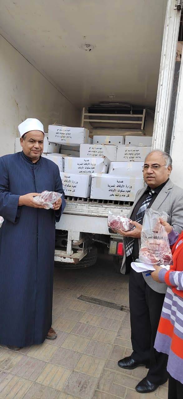 ومن جانبه أوضح الشيخ خالد خضر مدير مديرية الأوقاف، أن جميع عمليات الذبح تمت وفق الضوابط الشرعية المعتمدة، وفي الوقت الشرعي للأضحية، تحت إشراف فريق كامل من أئمة وقيادات الوزارة، إلى جانب الأطباء البيطريين المختصين، لافتًا إلى أن عمليات التشفيه والتبريد والتجميد والنقل جرت وفق أعلى المعايير ضمانًا لجودة اللحوم التي يتم توزيعها على الأسر الأولى بالرعاية.