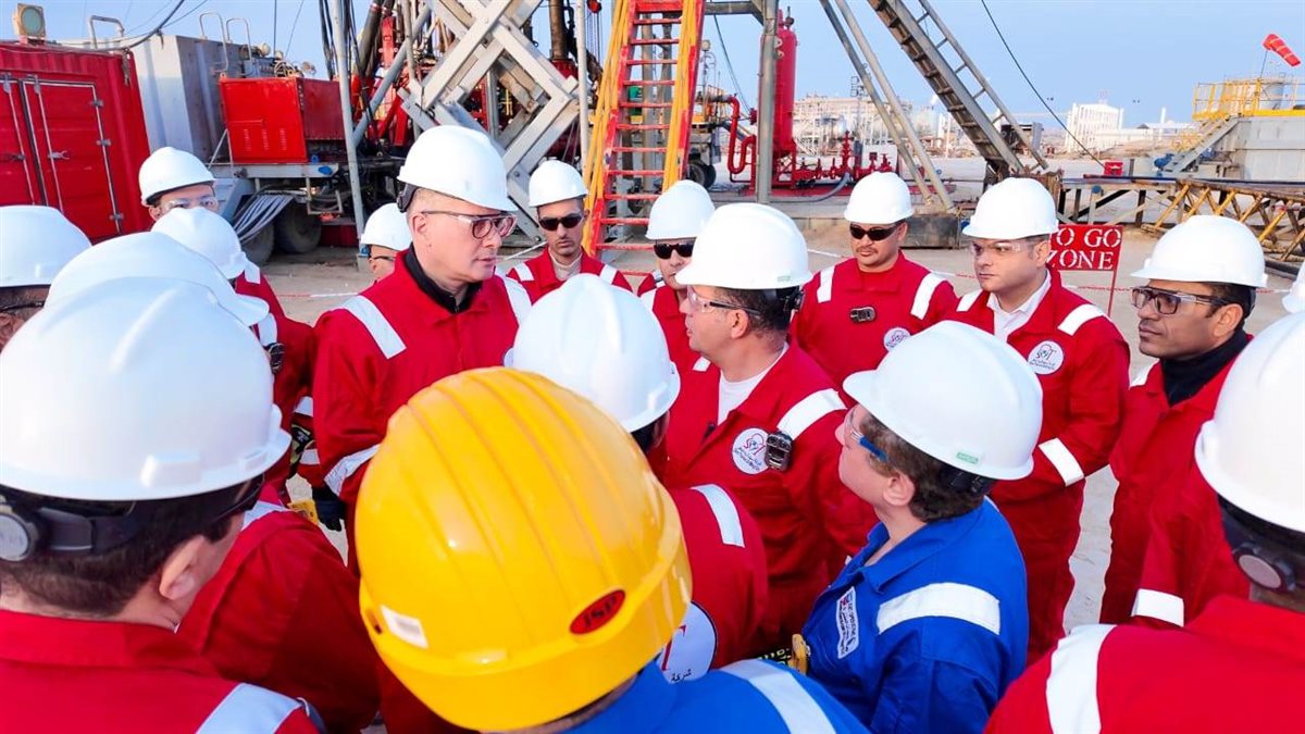 وعقب ذلك، توجه الوزير إلى أحد مواقع الحفارات التابعة للشركة، وتابع سير العمليات ميدانيًا، واطمأن على الالتزام بمعايير السلامة والصحة المهنية، وحرص على لقاء العاملين بالموقع وحثهم على مواصلة العمل الآمن وبذل المزيد من الجهد لتعزيز أعمال الشركة خارج مصر.