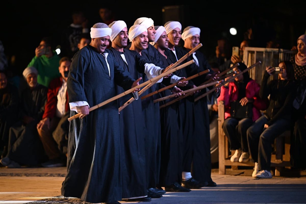 وقدمت فرقة أسيوط للفنون الشعبية، بقيادة محمود يحيى، رقصتي «العصايا» و«التحميلة»، فيما واصلت فرقة بني سويف بقيادة وائل عيد إحياء الأجواء التراثية من خلال رقصتي «النحاس» و«السحجة».