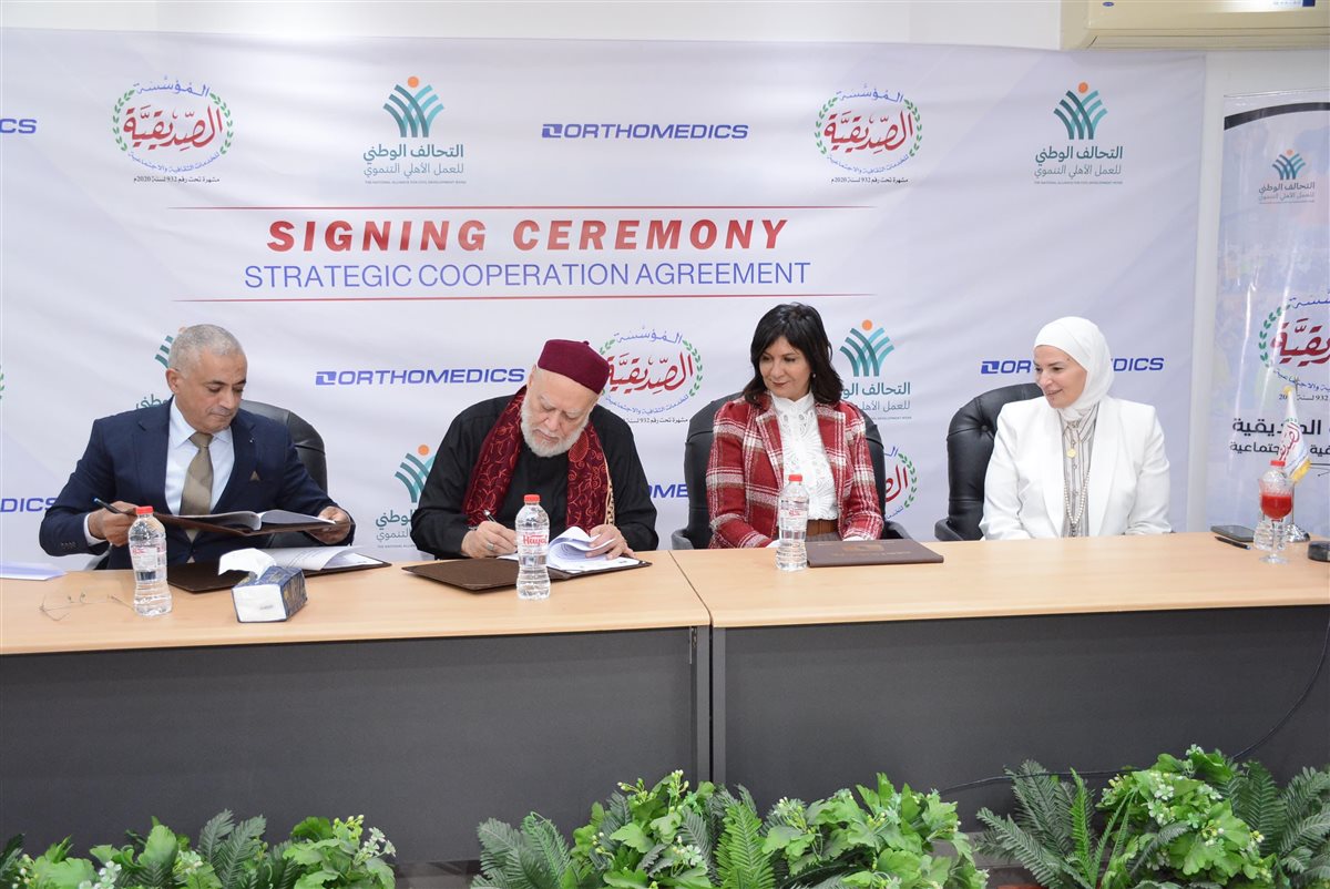 جرت مراسم التوقيع بحضور الإمام الدكتور علي جمعة، رئيس مجلس أمناء المؤسسة الصديقية، والسفيرة نبيلة مكرم رئيس الأمانة الفنية للتحالف الوطني، والدكتور خالد عبدالرحمن الديب، رئيس مجلس إدارة أورثوميدكس، وذلك في إطار توحيد جهود المجتمع المدني والقطاع الخاص لخدمة الفئات الأولى بالرعاية.