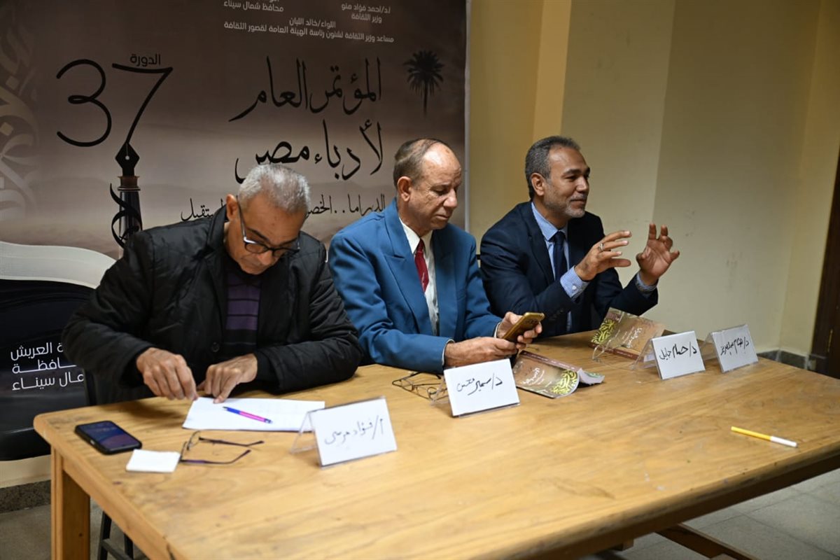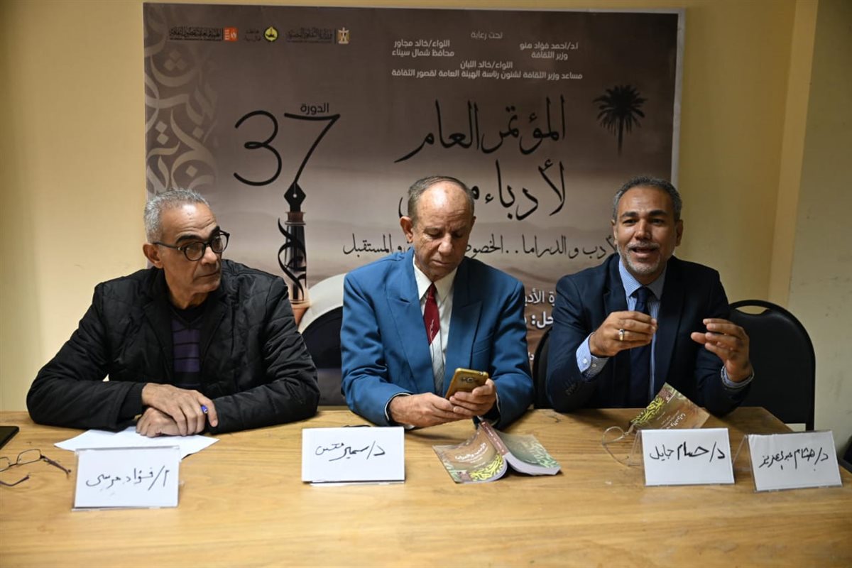 شهدت قاعة نادي الأدب بقصر ثقافة العريش انعقاد المائدة المستديرة الأولى، ضمن فعاليات المؤتمر العام لأدباء مصر في دورته السابعة والثلاثين، دورة "الأديب الكبير الراحل محمد جبريل"، والذي يقام هذا العام تحت عنوان "الأدب والدراما.. الخصوصية الثقافية والمستقبل"، برعاية الدكتور أحمد فؤاد هنو، وزير الثقافة، واللواء الدكتور خالد مجاور محافظ شمال سيناء، وتنظمه الهيئة العامة لقصور الثقافة برئاسة اللواء خالد اللبان، ويترأسه الشاعر والسيناريست الدكتور مدحت العدل، ويتولى أمانته العامة الشاعر عزت إبراهيم، وتستمر فعالياته حتى 29 ديسمبر الجاري 2025، في إطار برامج وزارة الثقافة.