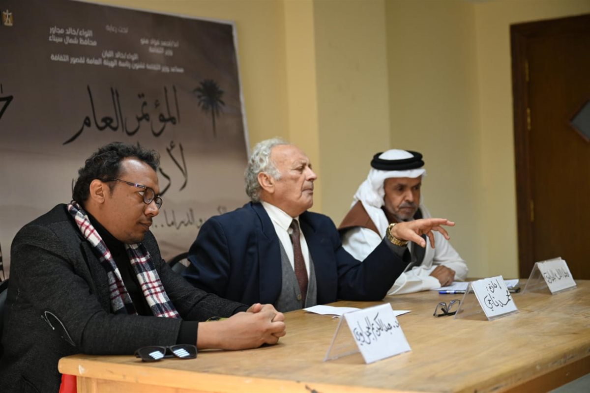 استقبل قصر ثقافة العريش، الجلسة البحثية العاشرة ضمن فعاليات المؤتمر العام لأدباء مصر في دورته السابعة والثلاثين، دورة "الأديب الكبير الراحل محمد جبريل"، المقام تحت رعاية الدكتور أحمد فؤاد هنو وزير الثقافة، واللواء الدكتور خالد مجاور محافظ شمال سيناء، وتنظمه الهيئة العامة لقصور الثقافة برئاسة اللواء خالد اللبان. ويقام المؤتمر هذا العام تحت عنوان "الأدب والدراما.. الخصوصية الثقافية والمستقبل"، برئاسة الشاعر والسيناريست الدكتور مدحت العدل، والأمين العام الشاعر عزت إبراهيم.