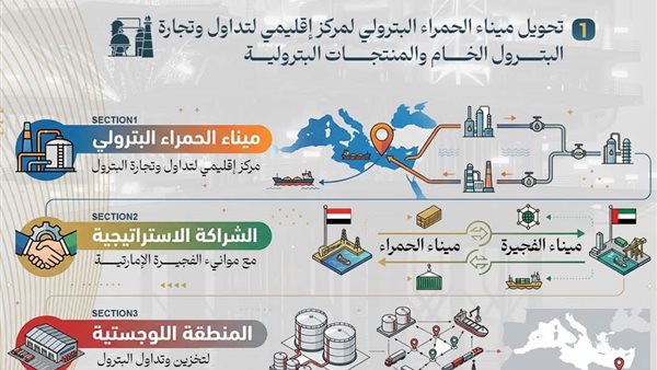 • توقيع اتفاقيات تطوير ميناء الحمراء البترولي بالعلمين الجديدة وتحويله لمركز إقليمي علي ساحل البحر المتوسط لتخزين وتداول وتجارة البترول الخام والمنتجات البترولية، وذلك بالتعاون مع موانئ الفجيرة الإماراتية التي تعد ثاني أكبر مركز عالميا في هذا المجال .