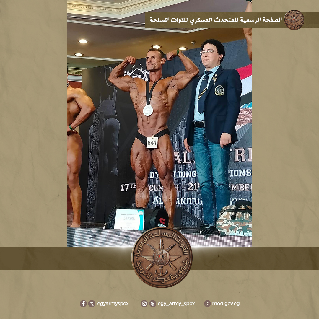 كما نجح العميد عمرو محمد إبراهيم ،في تحقيق الميدالية الفضية فئة كمال الأجسام وزن مفتوح والميدالية البرونزية فئة كلاسيك فيزيك طول 184 سم للأساتذة فوق سن الخمسين، وذلك خلال مشاركته فى بطولة العالم لكمال الأجسام ضمن بعثة جمهورية مصر العربية بالمملكة العربية السعودية .
