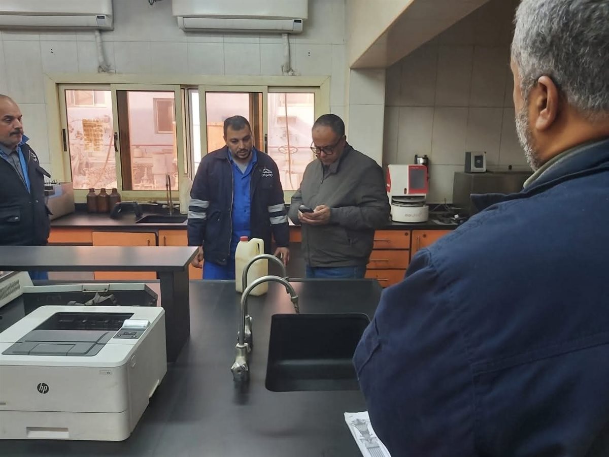 كما تفقد العمل بمعمل العينات، وأبدى ملاحظاته حول نقل العينات من المنطقة إلى مقر معمل تحليل العينات بشركة القاهرة الكبرى بمنطقة مسطرد من خلال استخدام عبوات غير مناسبة، كما اطلع على حركة التشغيل للعاملين والتنكات، وتابع عمليات الصيانة للخزان رقم 2 التى تقوم بها شركة الإسكندرية لصيانة المشروعات البترولية (بترومنت) .