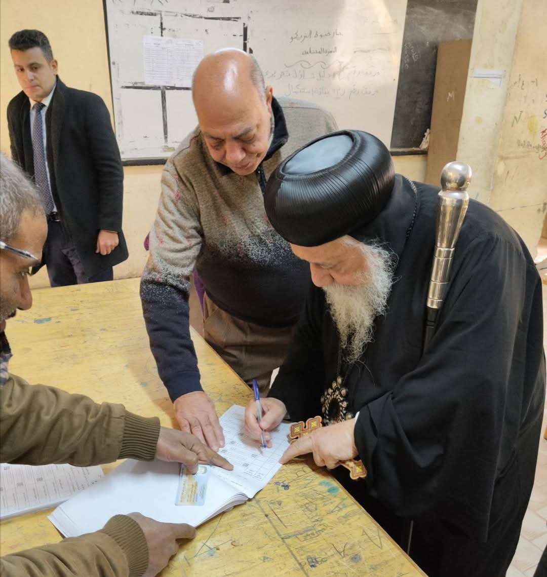 الأنبا ديمتريوس أسقف ملوي بالمنيا يدلي بصوته في جولة الإعادة بالانتخابات