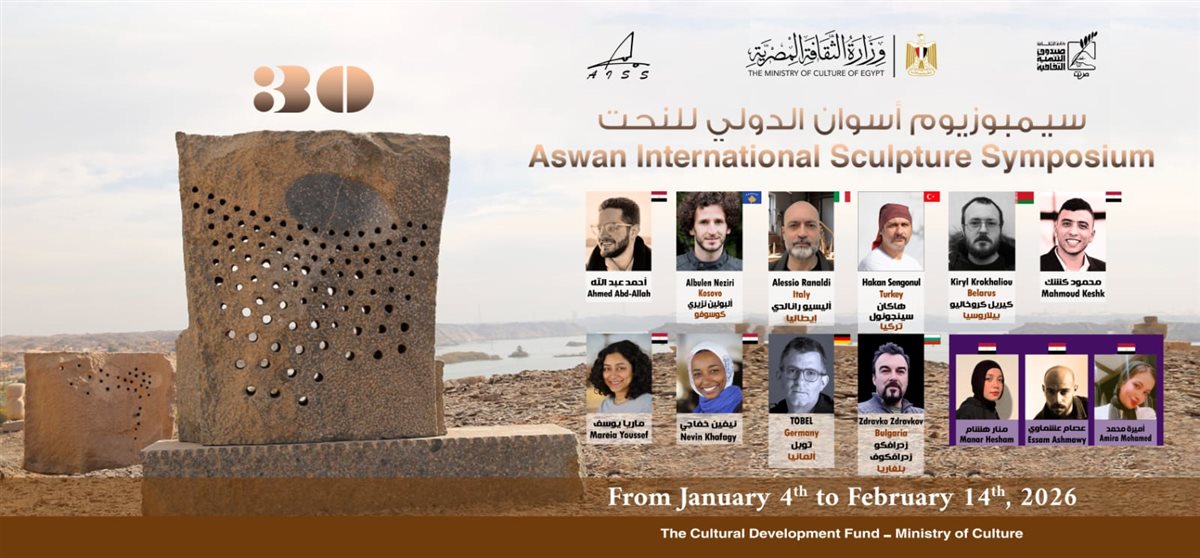 انطلقت اليوم بمدينة أسوان فعاليات الدورة الثلاثين من سيمبوزيوم أسوان الدولي لفن النحت، الذي تنظمه وزارة الثقافة ممثلة في قطاع صندوق التنمية الثقافية، بالتعاون مع محافظة أسوان، وذلك في إطار دعم الدولة للفنون الجادة، وتعزيز حضور الإبداع في الفضاء العام، وترسيخ مكانة أسوان كأحد المراكز العالمية لفن النحت على الجرانيت، على أن تستمر فعاليات الدورة حتى 14 فبراير 2026.