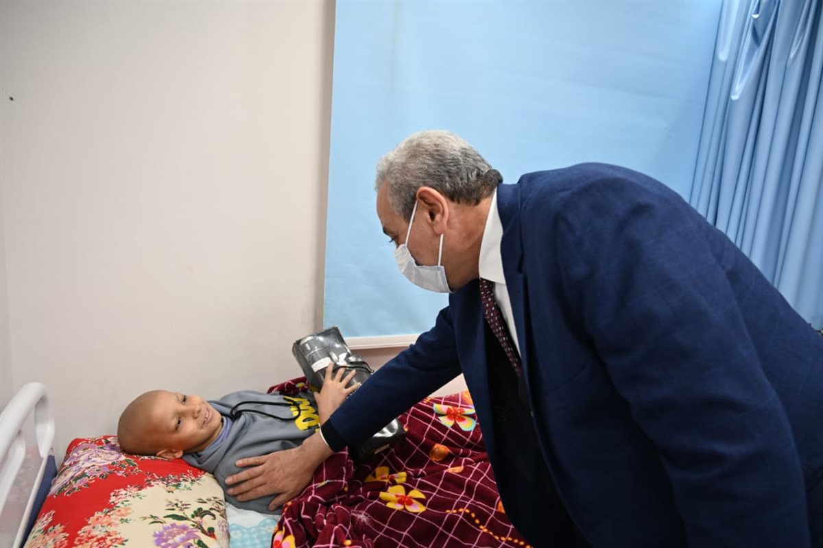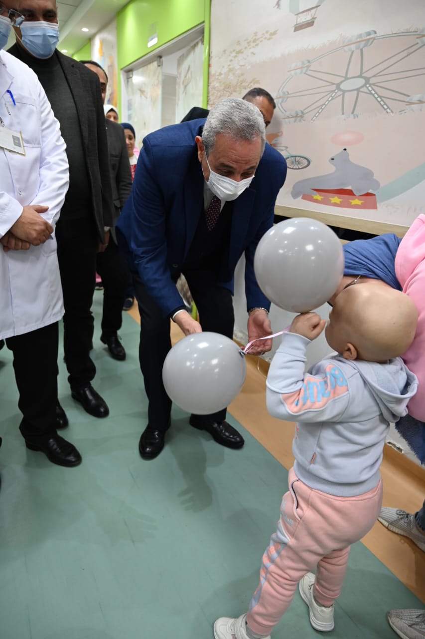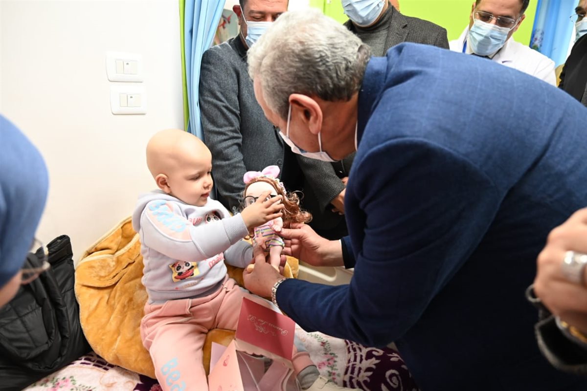 بالصور.. محافظ الغربية يوزع الهدايا على أطفال أورام طنطا ويستمع لمطالب أسرهم
