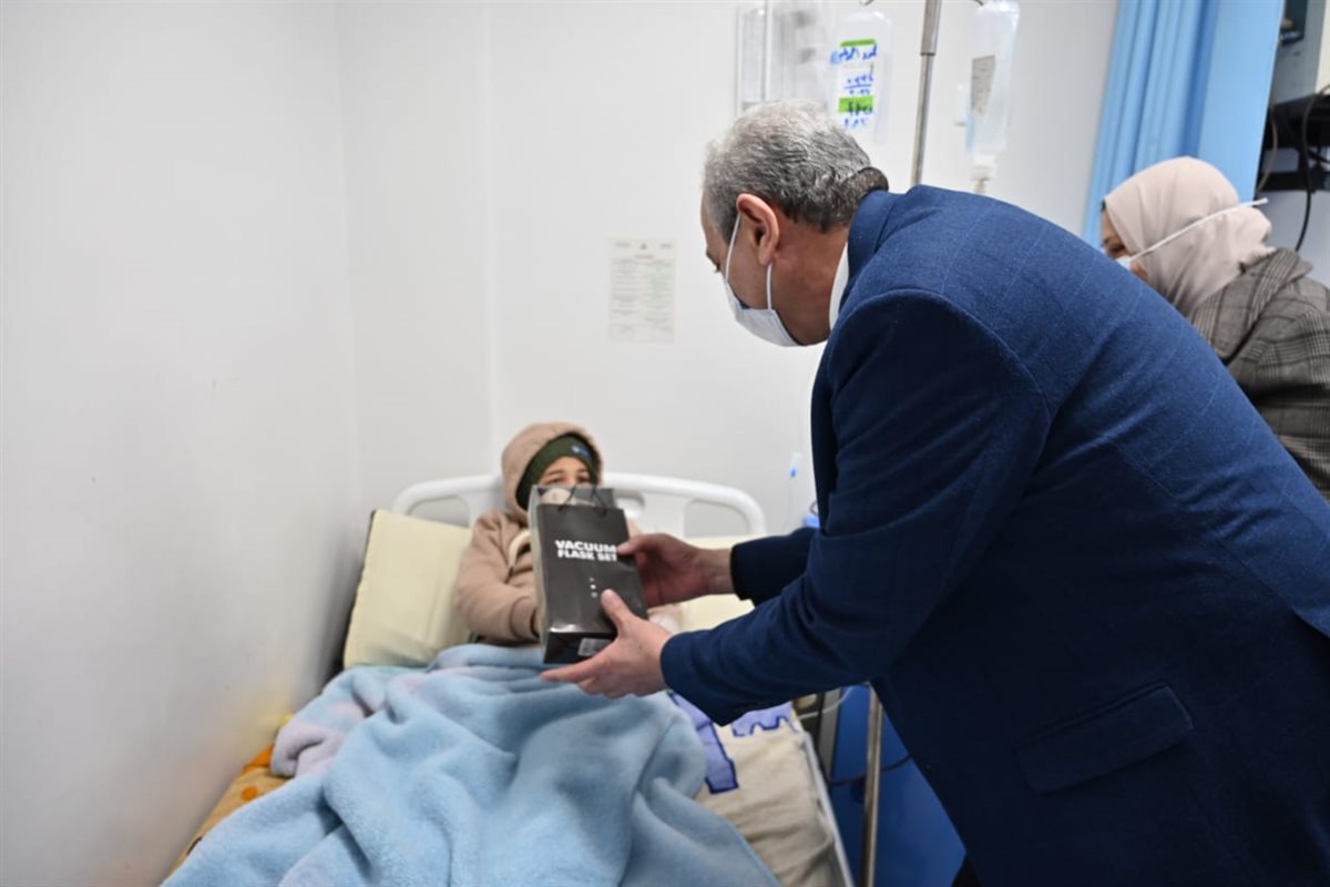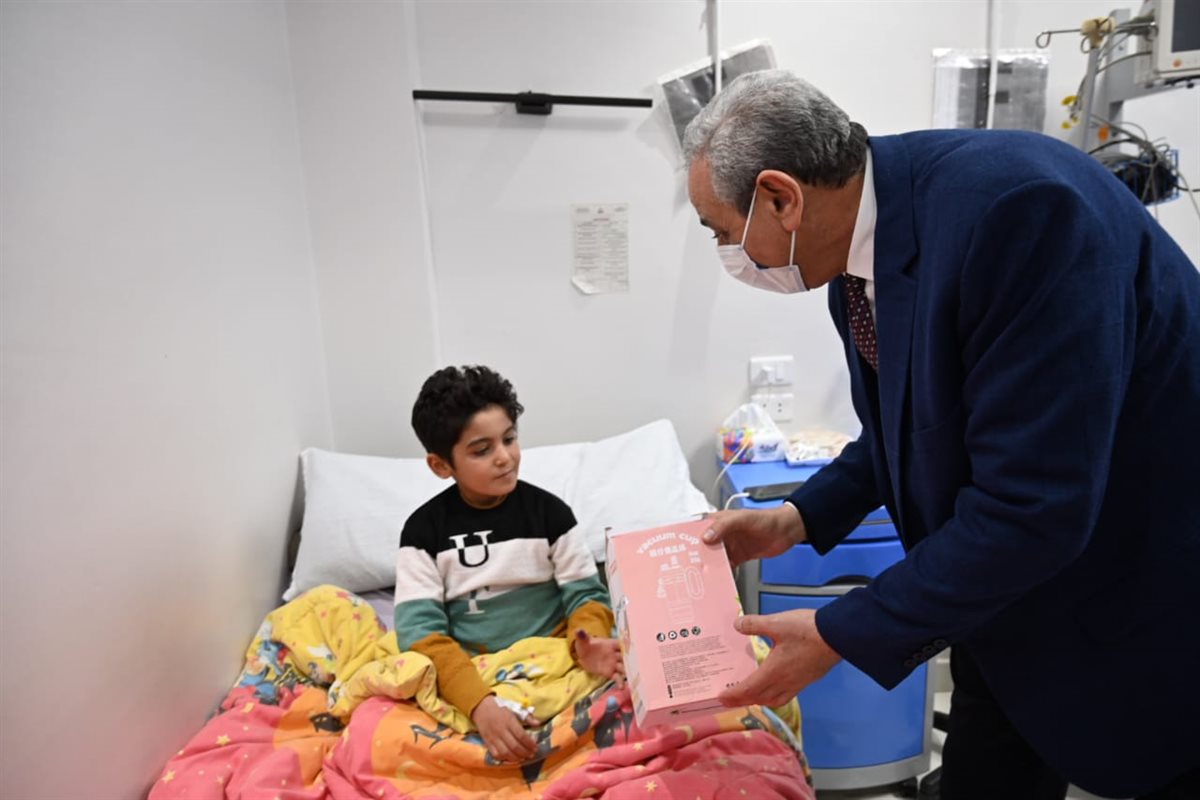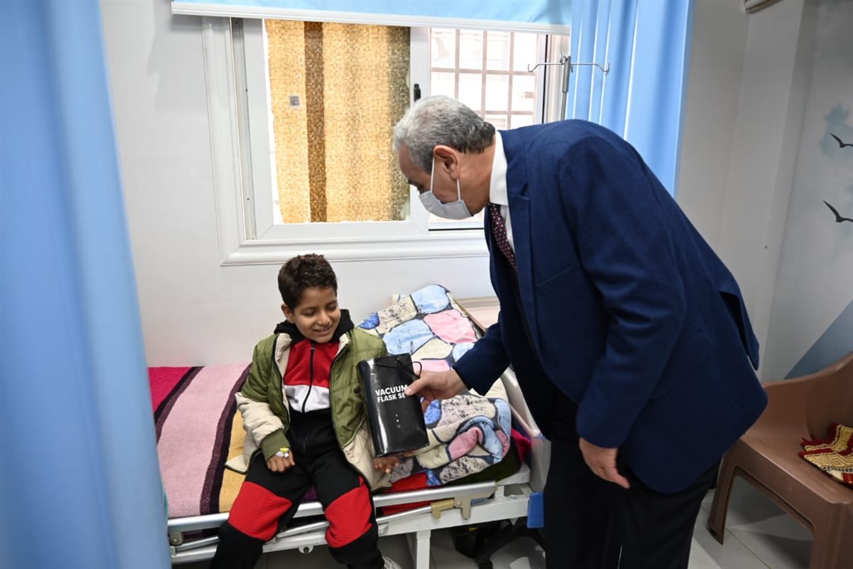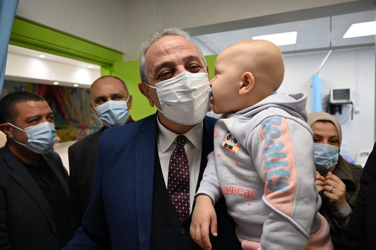 بالصور.. محافظ الغربية يوزع الهدايا على أطفال أورام طنطا ويستمع لمطالب أسرهم