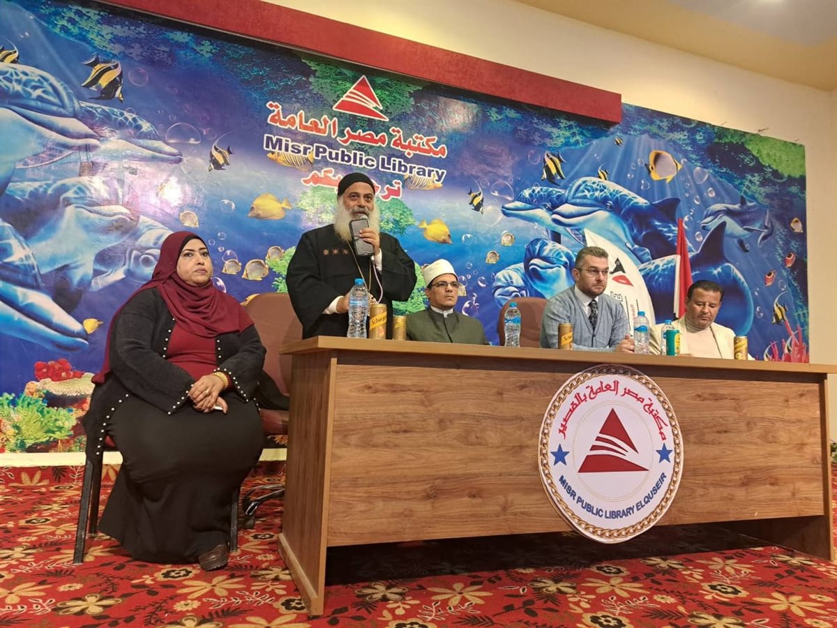 كما عقدت ندوة بعنوان "رسالة الأديان حياة.. والوطن بيت للجميع"، ألقاها كل من القمص يوحنا خيري راعي كنيسة العذراء مريم، وفضيلة الشيخ حسن جمال إمام وخطيب مسجد، نائبا عن مدير الأوقاف، حيث أكدا أن رسالة الأديان تقوم على ترسيخ القيم الأخلاقية والإنسانية التي تضمن حياة كريمة للإنسان، وأن الوطن بيت جامع لكل أبنائه دون تمييز، مع التأكيد على أهمية التسامح والتعايش السلمي، وطرح الرؤى من المنظورين الدينيين.