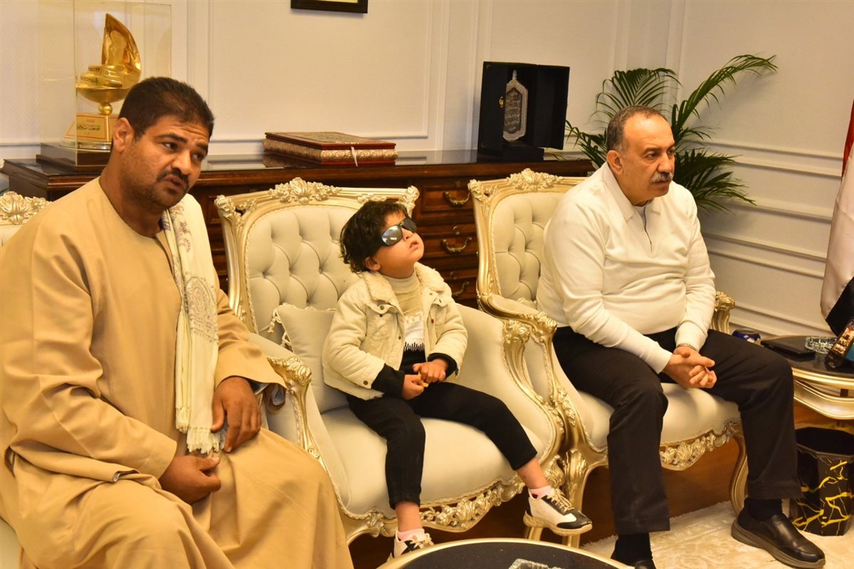 في بادرة إنسانية..محافظ أسيوط يستقبل طفلًا كفيفًا وأسرته ويتكفل بعلاجه