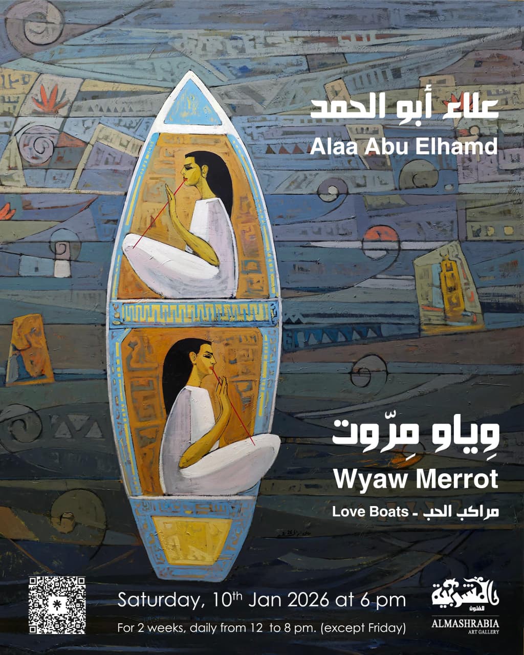 يفتح جاليري المشربية للفنون أبوابه لجمهور الفن التشكيلي إلى حضور افتتاح المعرض الجديد «وياو مروت – مراكب الحب» للفنان التشكيلي علاء أبوالحمد، وذلك اليوم السبت 10 يناير 2026، في تمام الساعة السادسة مساءً، بمقر الجاليري بالدقي.