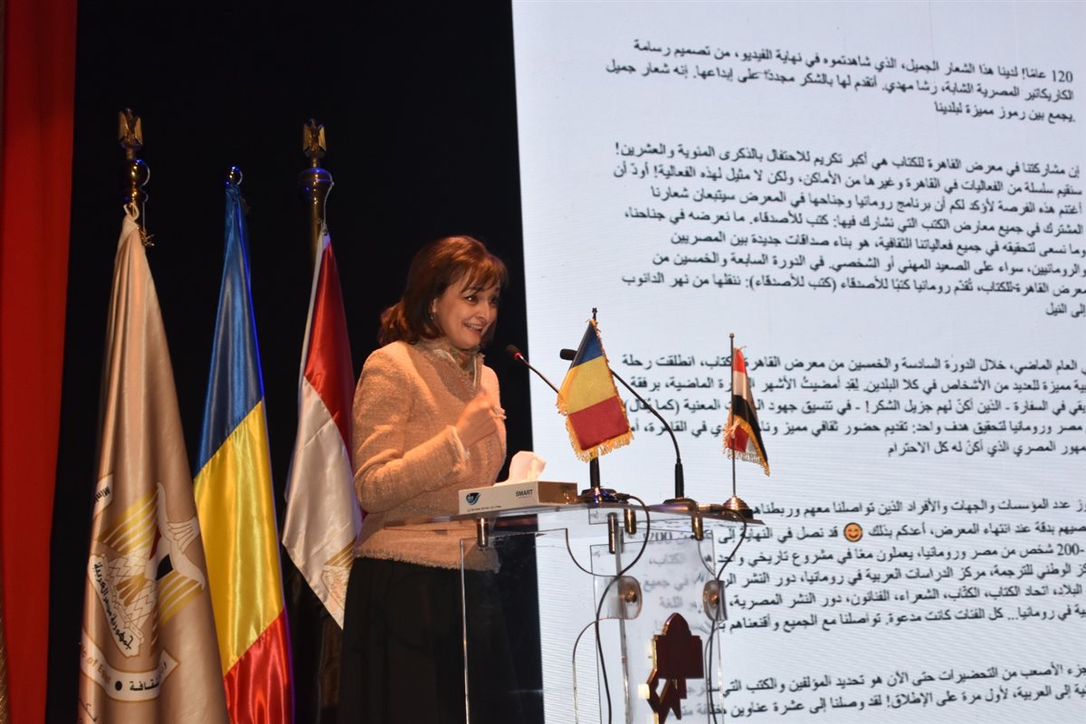 وأكدت أن اختيار رومانيا ضيف شرف في هذا التوقيت يحمل دلالة خاصة، لا سيما مع ما تشهده مصر من حراك ثقافي كبير، وفي مقدمتها افتتاح المتحف المصري الكبير، ما يعكس مكانة مصر الثقافية على المستويين الإقليمي والدولي.