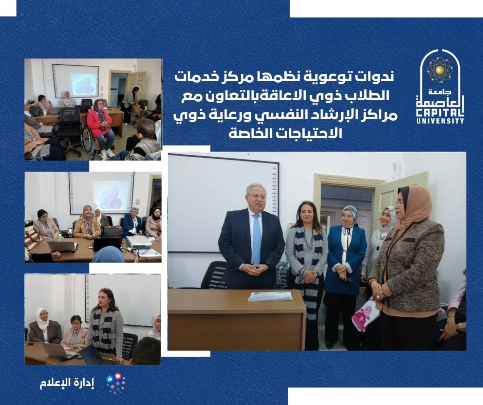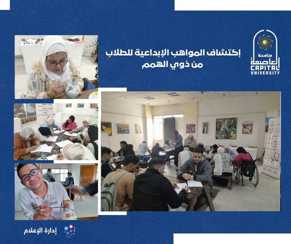 ونظمت الإدارة العامة لرعاية الطلاب لمجموعة من الورش الفنية الدامجة ضمن المبادرة الرئاسية "تمكين"، لاكتشاف المواهب الإبداعية للطلاب من ذوي الإعاقة، وإتاحة الفرصة لهم للتفاعل الإيجابي مع زملائهم، تحت إشراف الأستاذة نشوة علي وتنفيذ، الدكتورة ريهام خطاب، بالإضافة إلى عقد لقاءات وندوات توعوية نظمها مركز التميز لخدمات الطلاب ذوي الاعاقة بقيادة الدكتورة دينا الحمادي وذلك لرفع الوعي بحقوقهم ونشر ثقافة الوعي المجتمعي، بالإضافة إلى إشراك الطلاب في أنشطة رياضية موحدة جمعت بينهم وبين لاعبي الأولمبياد الخاص المصري، لترسيخ قيم التعاون وروح الفريق، وتكريم الطلاب وأعضاء هيئة التدريس المشاركين في الفعاليات، تقديرًا لدورهم في نشر ثقافة الدمج والعمل التطوعي.