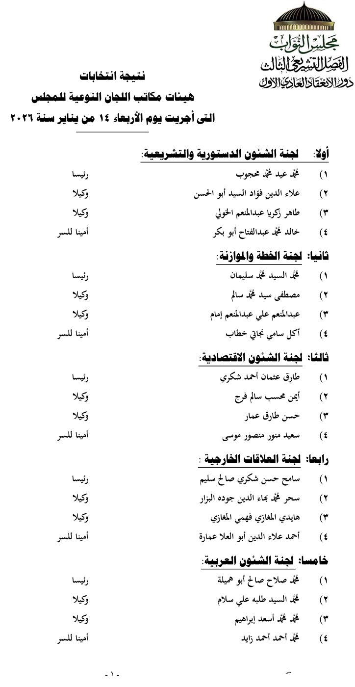 ننشر التشكيل الكامل للجان النوعية بمجلس النواب