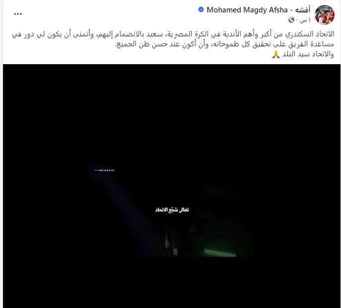 وكان النادي الأهلي قد أعلن، عبر موقعه الرسمي، موافقته على انتقال محمد مجدي أفشة إلى الاتحاد السكندري على سبيل الإعارة لمدة ستة أشهر، عقب الانتهاء من جميع الإجراءات الإدارية الخاصة بالصفقة.