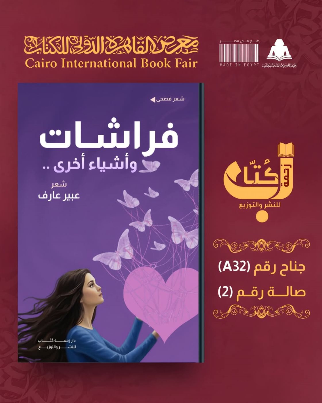 ومن المقرر أن يتوافر ديوان «فراشات وأشياء أخرى» ضمن أجنحة معرض القاهرة الدولي للكتاب في جناح دار زحمة كُتَّاب A32 – صالة رقم 2، خلال الفترة من 21 يناير إلى 3 فبراير 2026، بمركز مصر للمعارض الدولية بالتجمع الخامس.