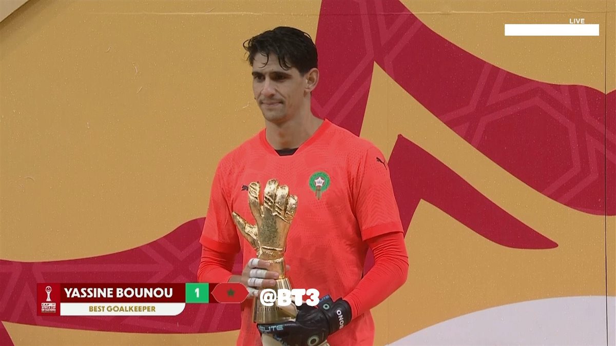 وفي حراسة المرمى، توج ياسين بونو حارس المنتخب المغربي بجائزة القفاز الذهبي كأفضل حارس في البطولة، تقديرًا لتصديه لأكثر من فرصة خطيرة وحفاظه على شباك فريقه نظيفة في العديد من المباريات، رغم خسارة النهائي.