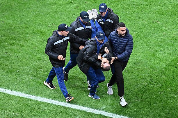 وامتدت حالة التوتر إلى المدرجات، حيث وقعت احتكاكات بين بعض الجماهير وموظفي التنظيم، مع قيام عدد من المشجعين بإلقاء مقاعد وغيرها من الأجسام الصلبة باتجاه أرضية الملعب، في محاولة للتعبير عن الغضب من مجريات الأحداث، وتدخلت قوات الأمن لتشكيل طوق أمني حول الملعب، وتمكنت من احتواء الموقف وتأمين اللاعبين قبل استئناف اللعب.