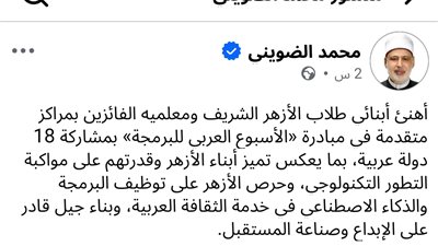 وأكد في ختام كلمته أن استعادة التوازن في الخطاب الديني وربطه بقيم العمل والإنتاج وإتقان المهن تمثل ضرورة حضارية لمواجهة التحديات المعاصرة، وبناء مستقبل أكثر قوةً واستقلالًا للأمة.