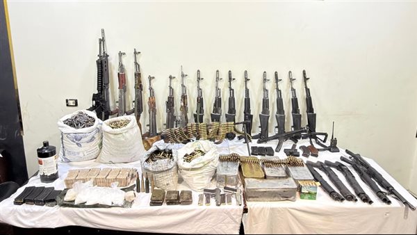 (8 كيلو جرام من المواد المخدرة المتنوعة " حشيش ، شابو" - 24 قطعة سلاح نارى "رشاش جرينوف – رشاش – 15 بندقية آلية ، 5 بنادق خرطوش – 2 طبنجة")..هذا وتقدر القيمة المالية للمضبوطات بحوالي (30 مليون جنيه).