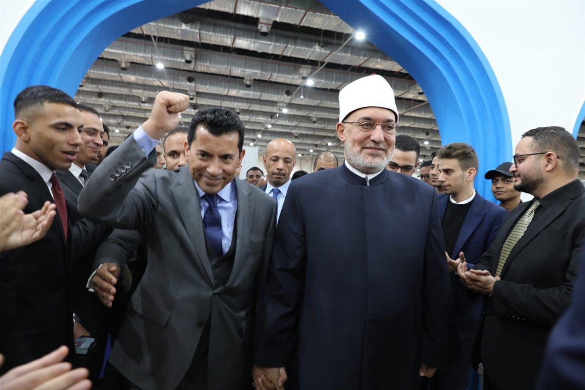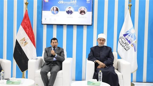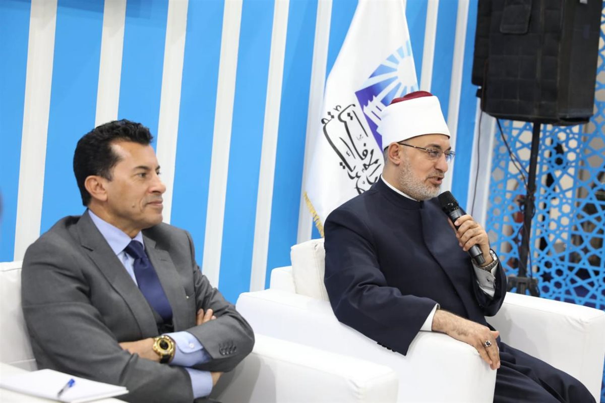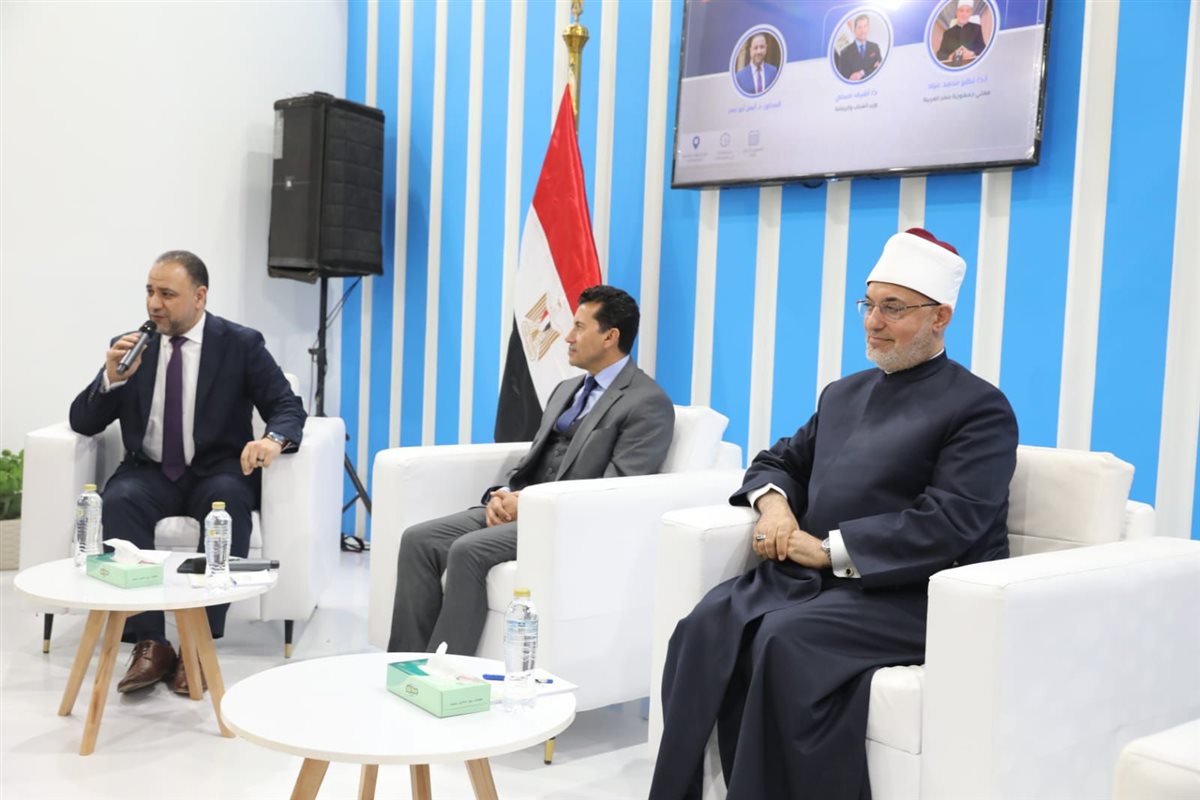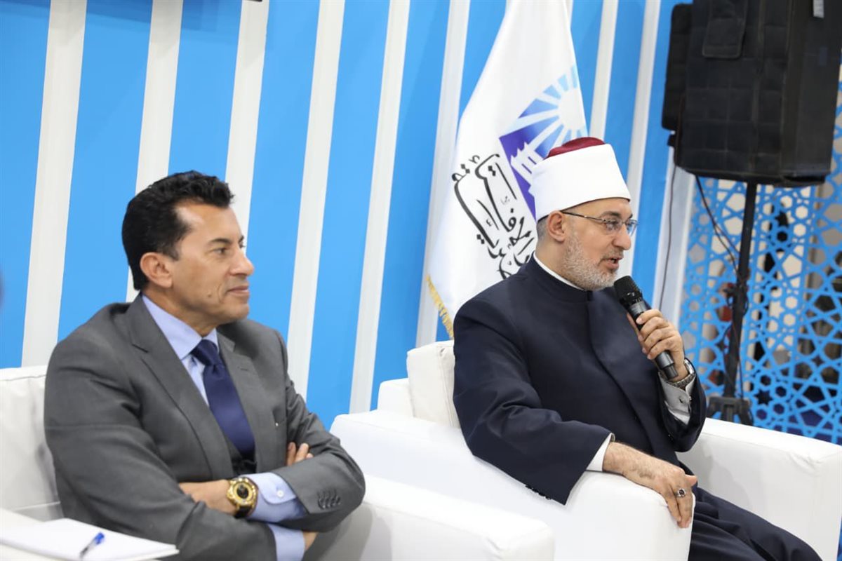 من جانبه، أكد أ.د. أشرف صبحي، وزير الشباب والرياضة، تقديره لاستضافته في جناح دار الإفتاء المصرية، مثمنًا وجود قيادات وزارة الشباب والرياضة، ومعلنًا عن بدء تعاون مشترك بين المؤسستين، وأوضح الوزير أن النظرة الفكرية المنفتحة لدار الإفتاء، ودعمها للعلم والعمل في إطار بناء الجمهورية الجديدة، تمثل ركيزة أساسية في التعامل مع قضايا الشباب والتنمية والتنشئة وترسيخ القيم السامية، مثل التعليم والحرص على العمل، مشيرًا إلى أن وزارة الشباب والرياضة تعمل على ذلك من خلال الاتحادات والكيانات الشبابية، حيث تغير الزمن بتغيُّر الوقت، وأن علوم الاتصال أثرت بشكل كبير على المجتمعات، وأحدثت تغيرات على مستوى الكرة الأرضية، موضحًا أن الهاتف المحمول زاد من حالة الوجدانية الفردية، وأصبح لكل شخص حالة من الاختلاء العقلي مع هذا الجهاز، يتلقى من خلاله كمًّا هائلًا من المعلومات غير المعلومة المصدر، وأن هذا الواقع يمثل تحديًا كبيرًا، حيث تسللت ثقافات مجتمعية لا ننتمي إليها، وأصبح دور الأسرة والمدرسة والمؤسسات أكثر صعوبة، وظهرت قضايا مجتمعية دخيلة، وأنه مع تدفق آلاف الأخبار في أقل من ثانية، نشأ انجذاب سلوكي لدى الشباب، وهو ما أفرز ما وصفه بـقضايا الوعي.