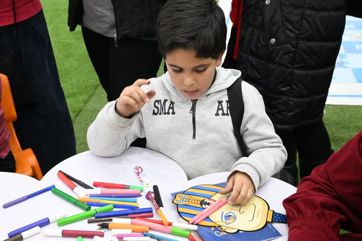 وتواصلت الفعاليات مع ورشة عمل ميدالية من الفوم جليتر تدريب سارة علي، وأخرى لعمل فواصل للكتاب بألوان متنوعة نفذتها د. إيمان نوار، بجانب فقرة رسم على الوجه نفذها هاني ناجح.