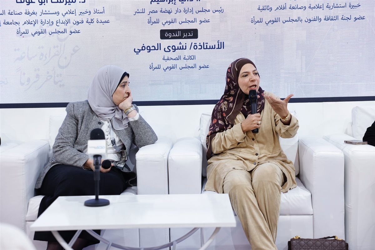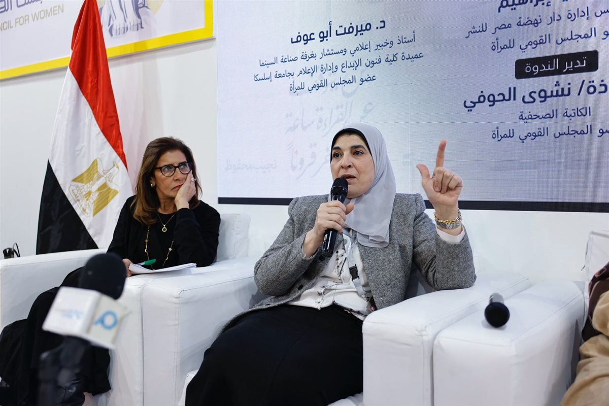 وأدارت الندوة الاعلامية نشوى الحوفي، عضوة المجلس القومي للمرأة، بمشاركة كل من داليا إبراهيم، رئيس مجلس إدارة دار نهضة مصر للنشر وعضو المجلس القومي للمرأة، والدكتورة ميرفت أبو عوف، أستاذ وخبير إعلامي ومستشار بغرفة صناعة السينما وعميدة كلية فنون الإبداع وإدارة الإعلام بجامعة إسلسكا وعضو المجلس القومي للمرأة، إلى جانب الدكتورة مها شهبة، الخبيرة الاستشارية الإعلامية وصانعة الأفلام الوثائقية وعضو لجنة الثقافة بالمجلس.