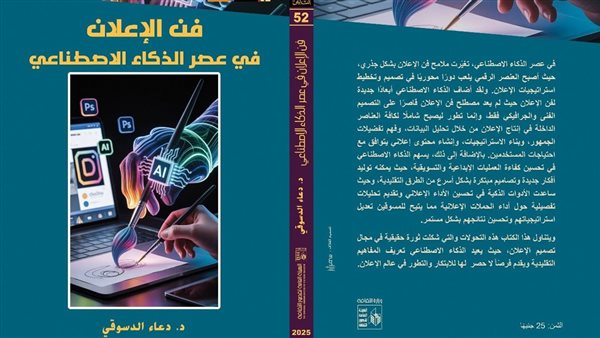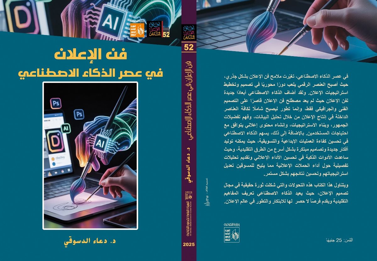 ضمن إصدارات معرض القاهرة للكتاب يأتي كتاب "فن الإعلان في عصر الذكاء الاصطناعي" للدكتورة دعاء الدسوقي، والصادر عن سلسلة "آفاق الفن التشكيلي" بالهيئة العامة لقصور الثقافة، كخطوة رائدة تهدف إلى سد الفجوة المعرفية في المكتبة العربية حول تقاطع الفن بالتقنيات الحديثة، وذلك في إطار جهود الإدارة العامة للنشر الثقافي برئاسة الكاتب الحسيني عمران، الذي يحرص على تقديم إصدارات نوعية تشتبك مع القضايا المعاصرة وتثري الوعي الفني لدى الجمهور.