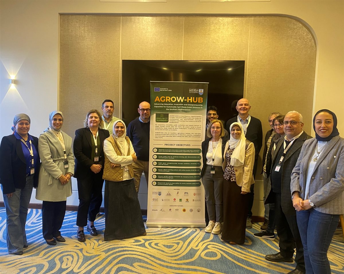 أطلقت جامعة الإسكندرية، مشروع AGROW-HUB الممول من الاتحاد الأوروبي باعتبارها الجهة المُنسِّقة للمشروع الهادف إلى تعزيز الحلول المستدامة لإدارة المخلفات الزراعية وتحويلها إلى منتجات عالية القيمة تدعم الاقتصاد الحيوي الدائري وتسهم في تحقيق أهداف التنمية المستدامة الخضراء.
