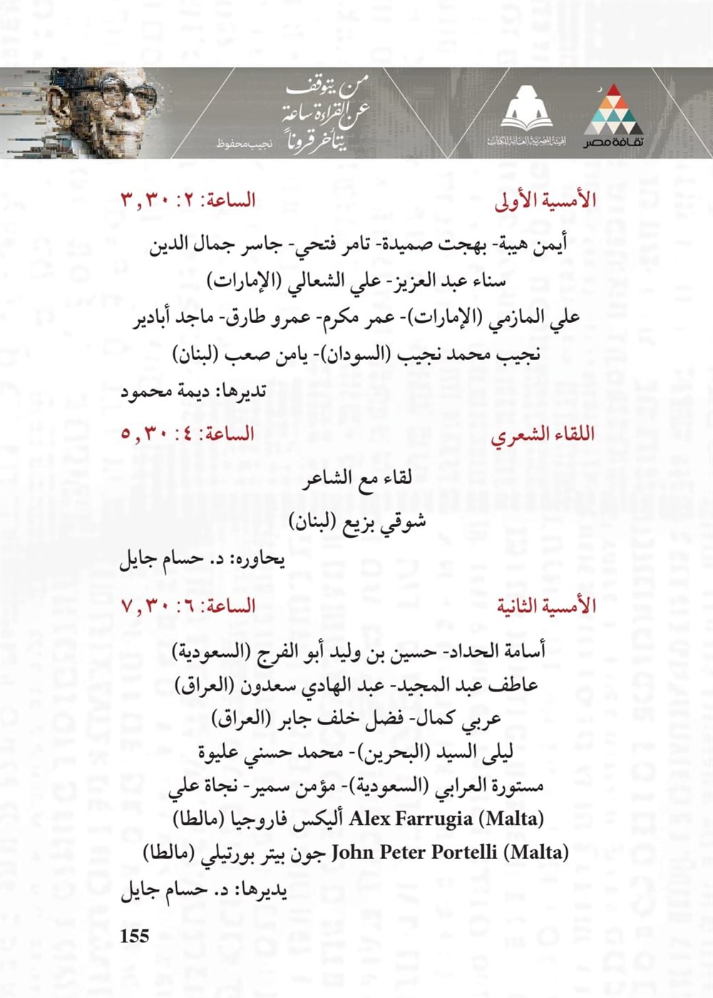 ينظم معرض القاهرة الدولي للكتاب، في دورته السابعة والخمسين، غدًا الأربعاء 28 يناير 2026، أمسية شعرية بمشاركة نخبة من الشعراء، يشارك فيها الشاعر والأكاديمي السعودي الدكتور حسين بن وليد بن حسين أبوالفرج، رئيس قسم اللغة العربية وآدابها وأستاذ الأدب المقارن المساعد بجامعة الملك عبد العزيز بجدة، وذلك عبر أحدث إصداراته الشعرية ديوان «القلائد»، الصادر عن دار جداول للنشر والتوزيع (بيروت).