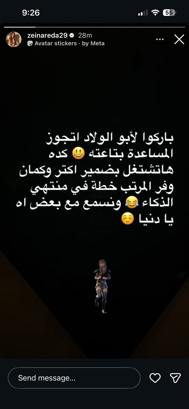 كشفت الفنانة زينة عن زواج الفنان أحمد عز، والد أبنائها، من مساعدته الخاصة، وذلك عبر منشور لها على صفحتها من خلال "إنستجرام"، وكتبت: "باركوا لأبو الولاد، اتجوز المساعدة بتاعته، كده يشتغل بضمير أكتر وأكتر، وكمان وفر المرتب، خطة في منتهى الذكاء، ونسمع مع بعض آه يا دنيا".