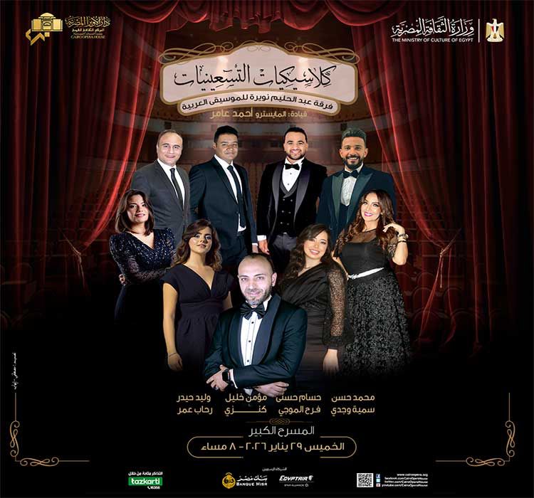 تستعيد دار الأوبرا المصرية ذكريات حقبة تسعينيات القرن الماضي في أمسية لفرقة عبد الحليم نويرة للموسيقى العربية بقيادة المايسترو أحمد عامر تقام في الثامنة مساء الخميس ٢٩ يناير 2026 على المسرح الكبير.