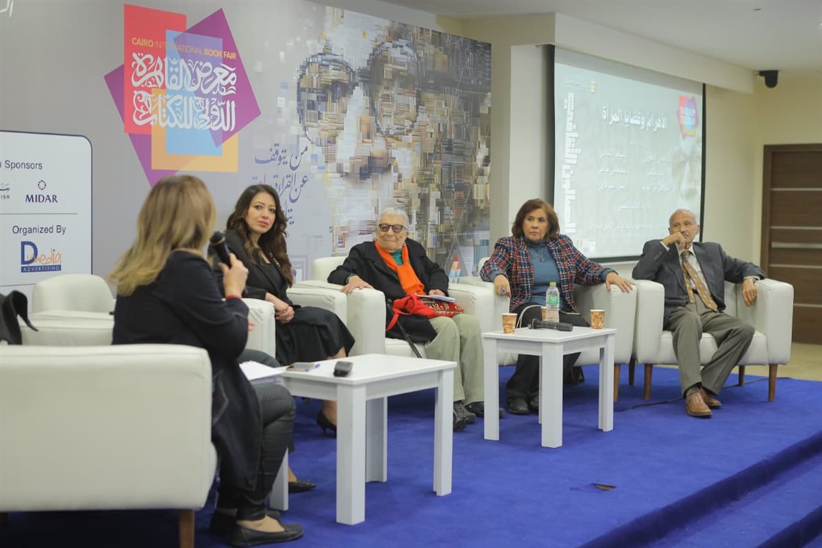 استضاف الصالون الثقافي بمعرض القاهرة الدولي للكتاب ندوة بعنوان «الأهرام وقضايا المرأة»، ضمن فعاليات البرنامج الثقافي للمعرض، بمشاركة الكاتبة الصحفية أمينة شفيق، والدكتورة أماني الطويل الباحثة السياسية، والكاتب الصحفي مصطفى سامي، والكاتبة سوسن عز العرب رئيس تحرير مجلة «نصف الدنيا»، والكاتبة يسرا الشرقاوي، وأدارت الندوة الكاتبة داليا شمس.