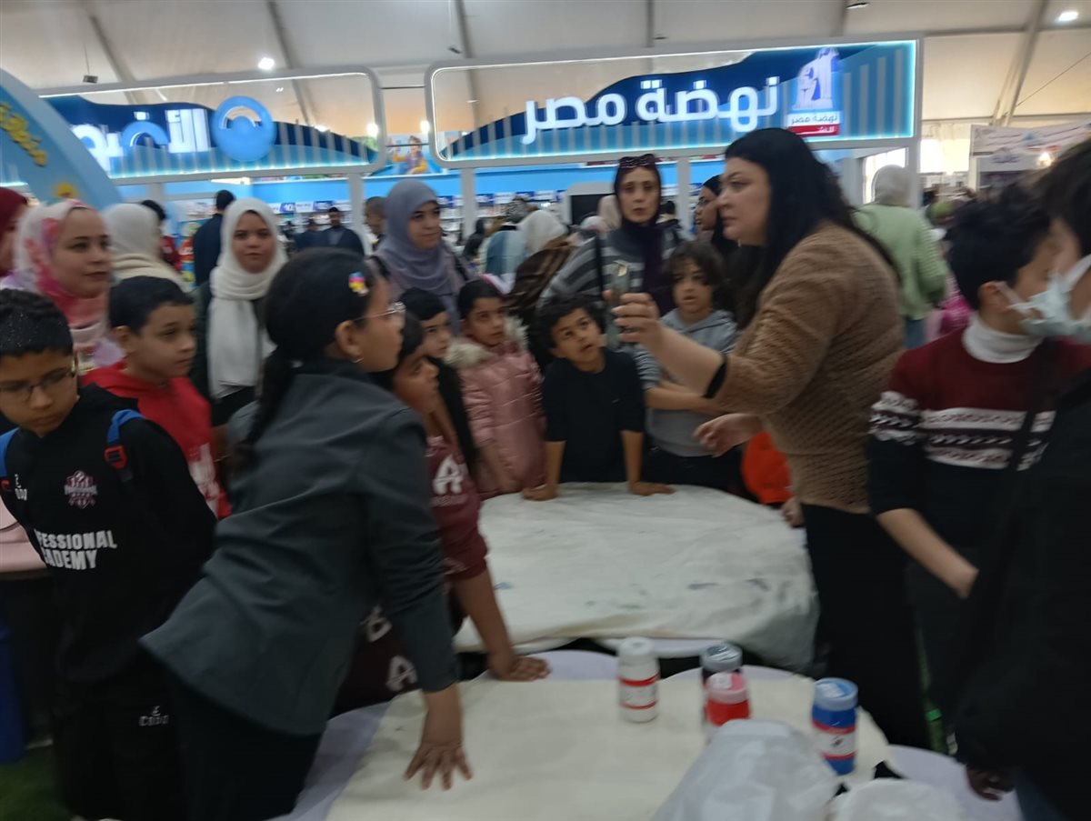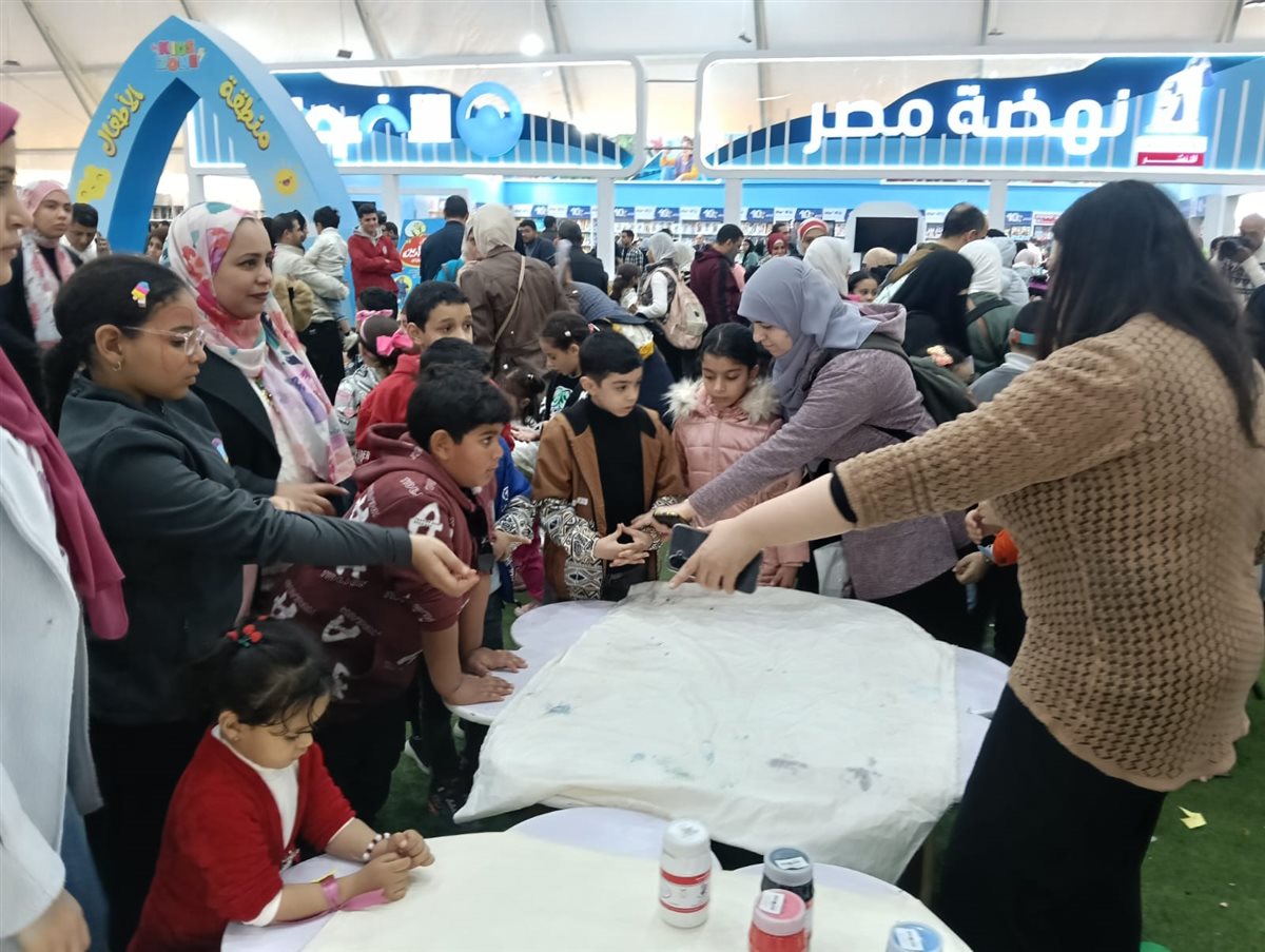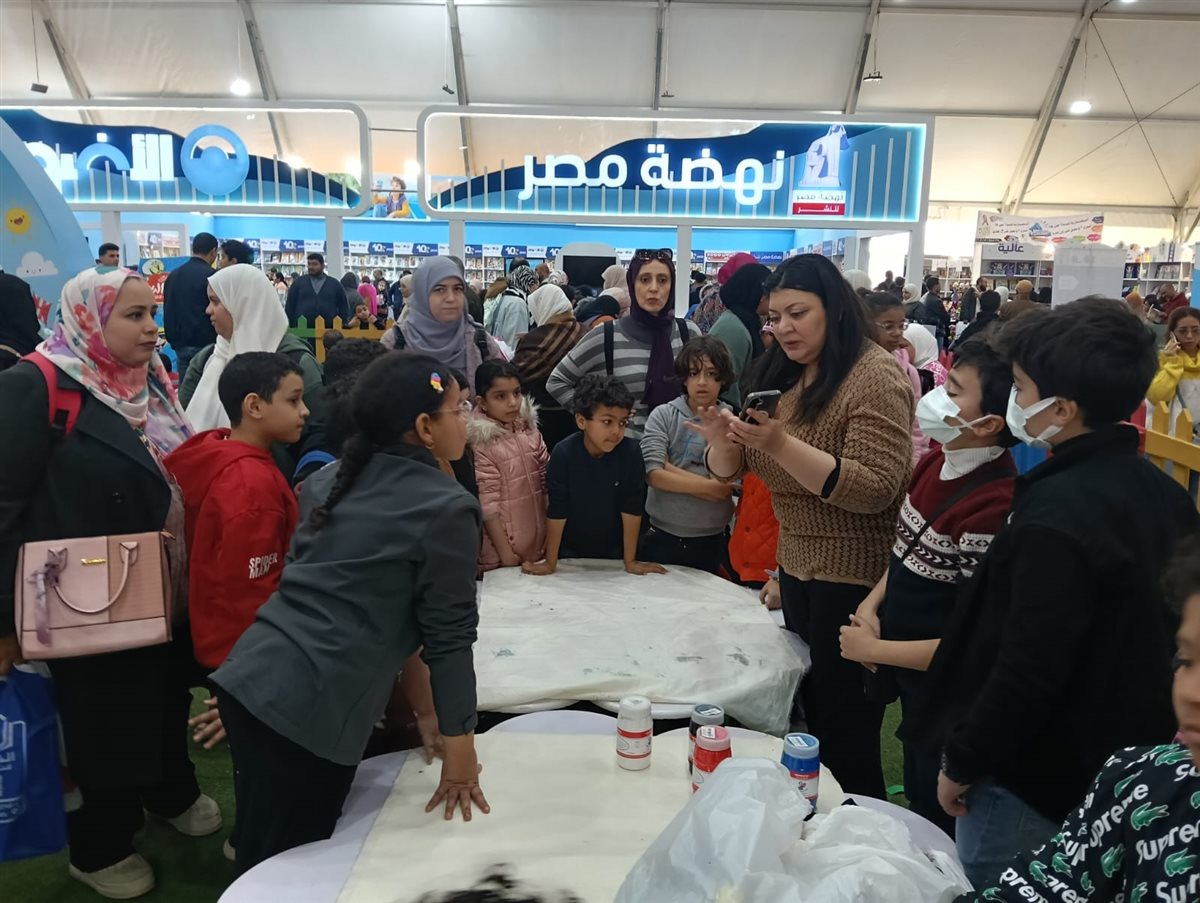 جدارية محيي اللباد تُزيّن ركن الطفل بمعرض الكتاب.. فدوى عطية تطلق ورشة فنية