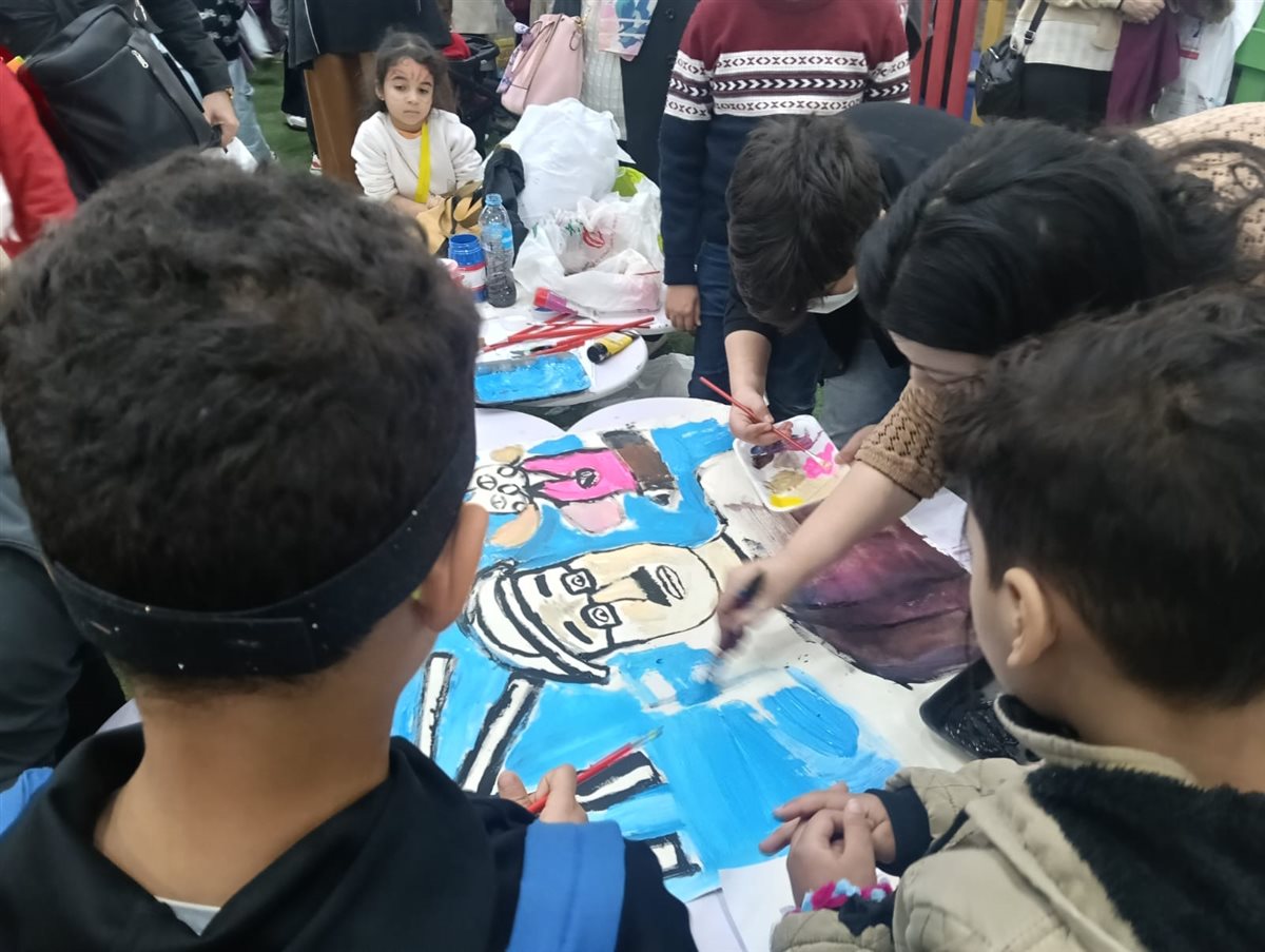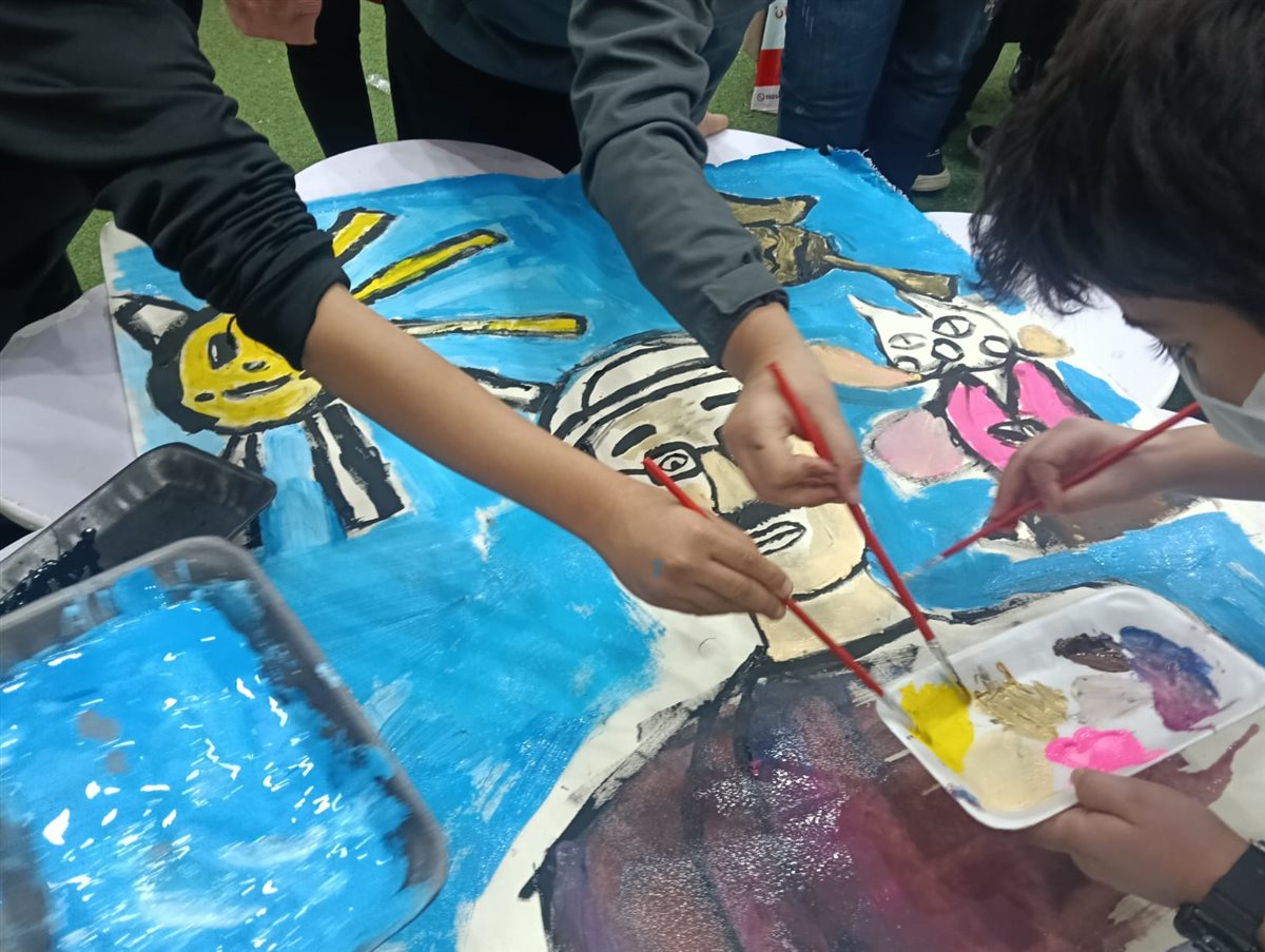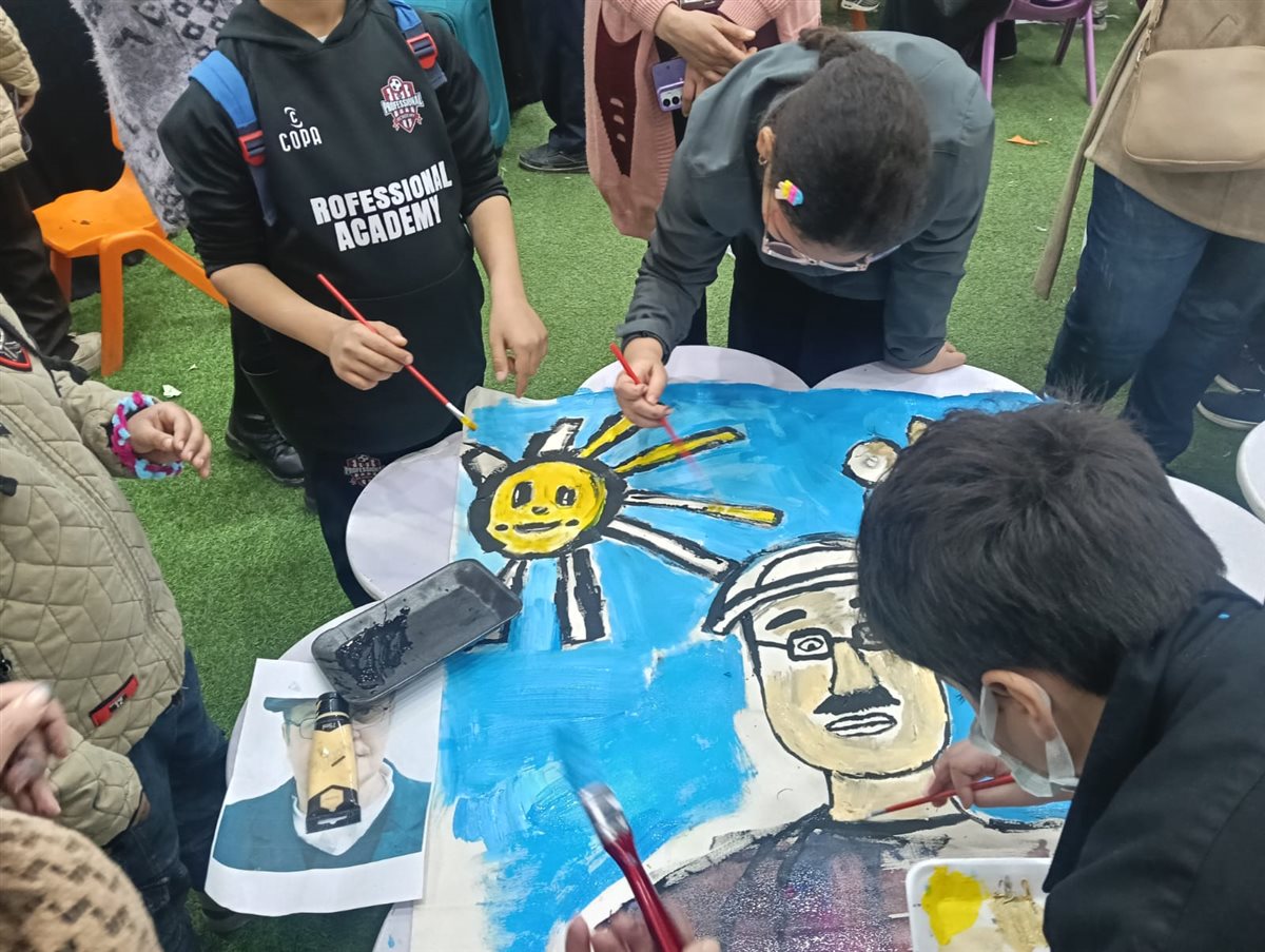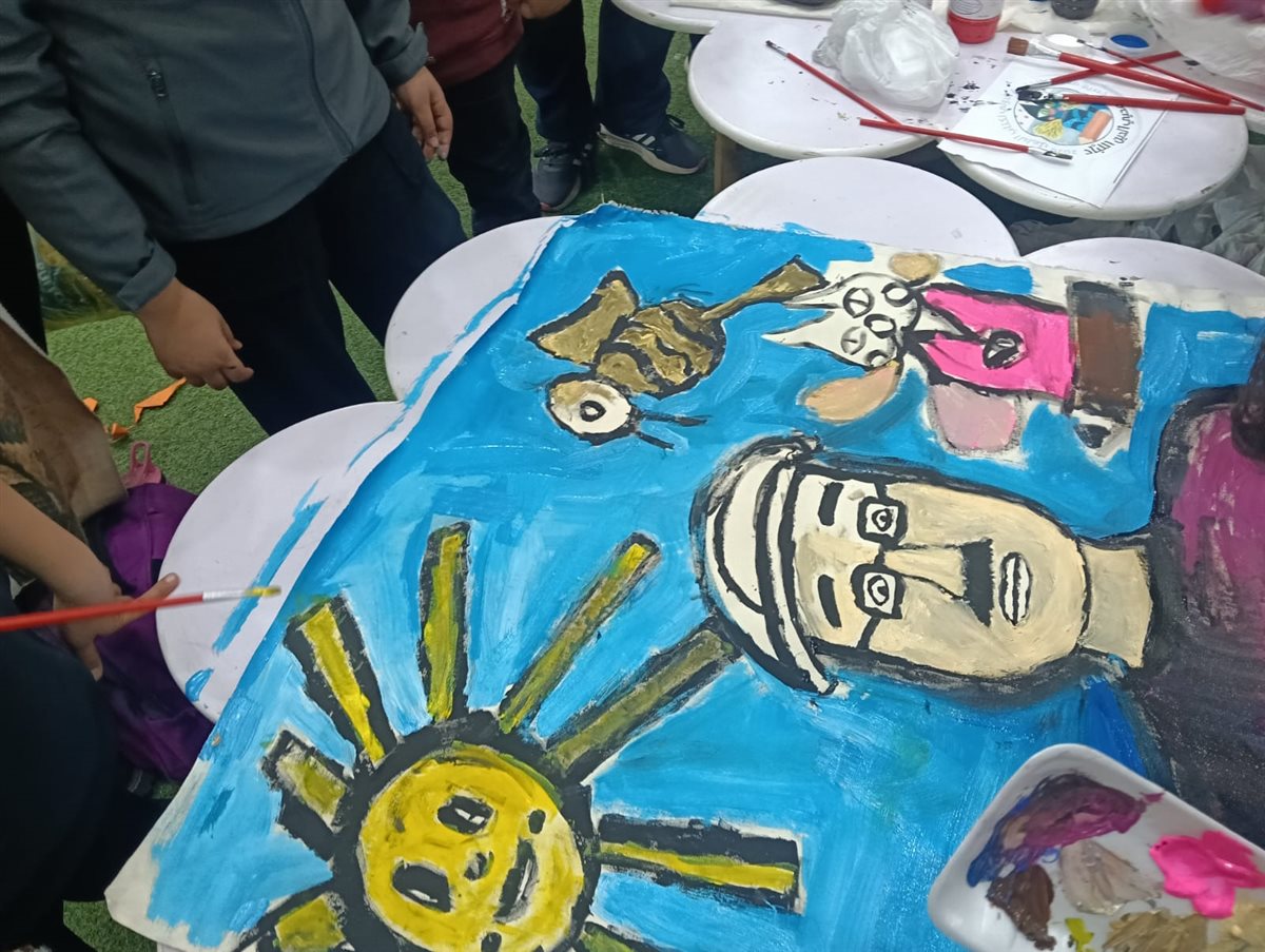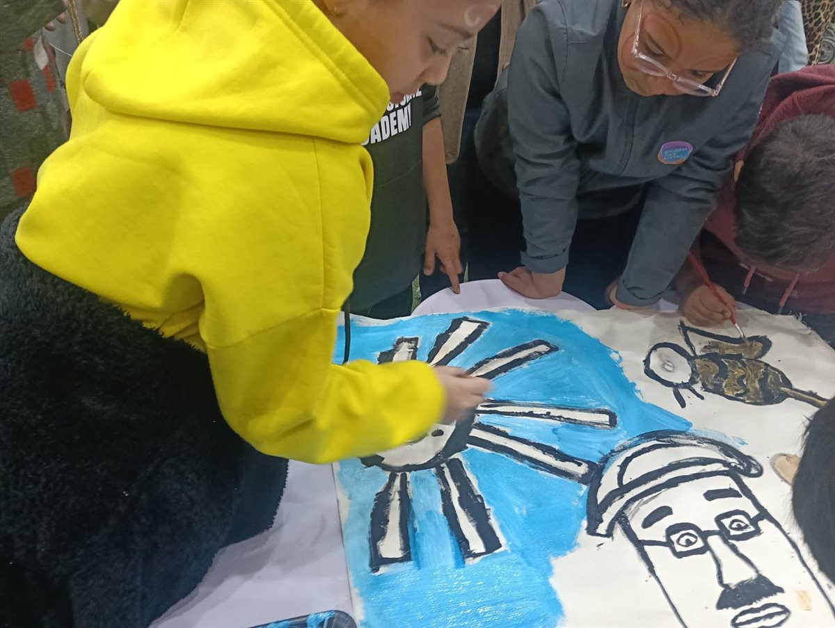 وأوضحت أن المشاركين قاموا برسم بورتريه للفنان محيي الدين اللباد بعد عرض صورته أمامهم، مشيرة إلى أن طفلًا في الثانية عشرة من عمره تولى رسم وجه الفنان بنفسه بحس فني لافت، ليحتل البورتريه مركز الجدارية، بينما التف الأطفال من حوله يشاركون في الرسم باستخدام ألوان البويات المائية والأكريليك.