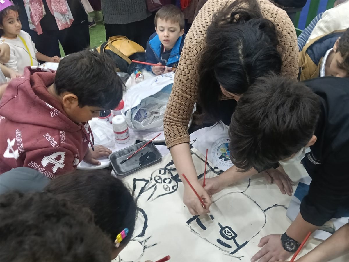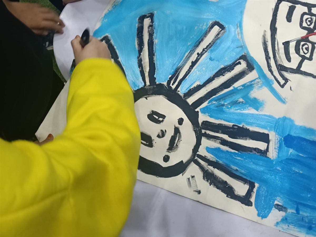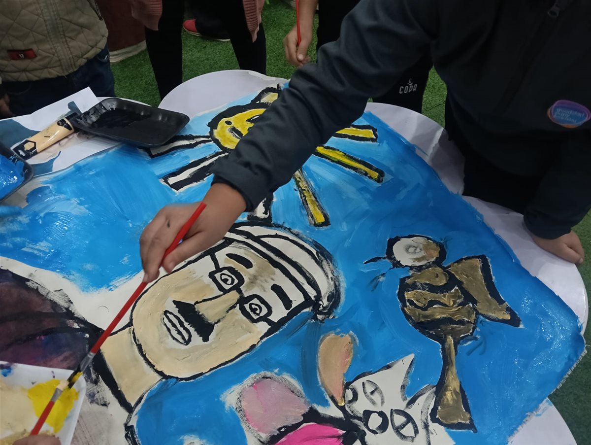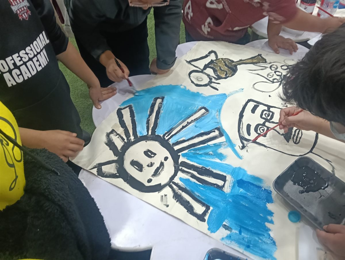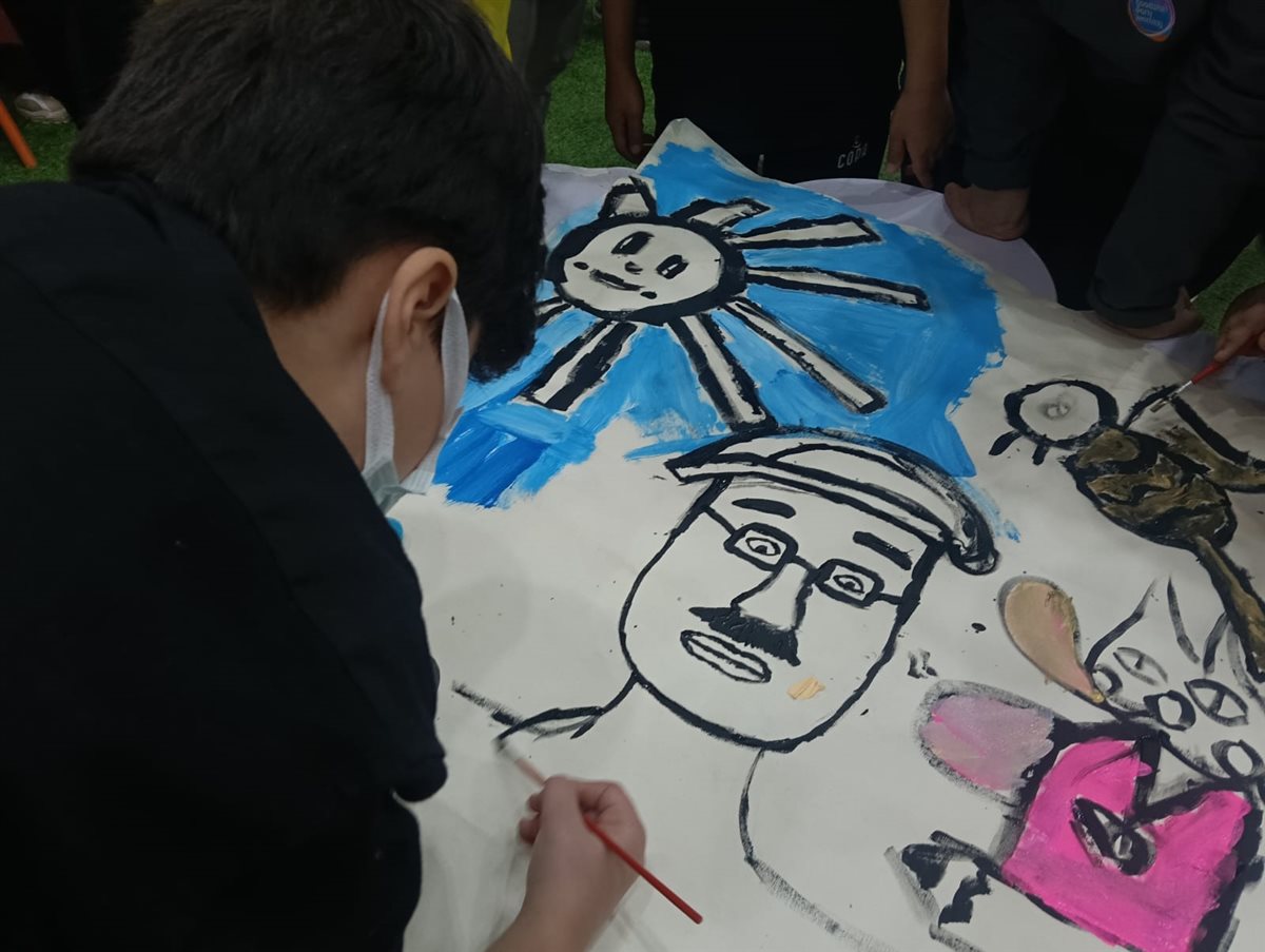 وأوضحت أن المشاركين قاموا برسم بورتريه للفنان محيي الدين اللباد بعد عرض صورته أمامهم، مشيرة إلى أن طفلًا في الثانية عشرة من عمره تولى رسم وجه الفنان بنفسه بحس فني لافت، ليحتل البورتريه مركز الجدارية، بينما التف الأطفال من حوله يشاركون في الرسم باستخدام ألوان البويات المائية والأكريليك.