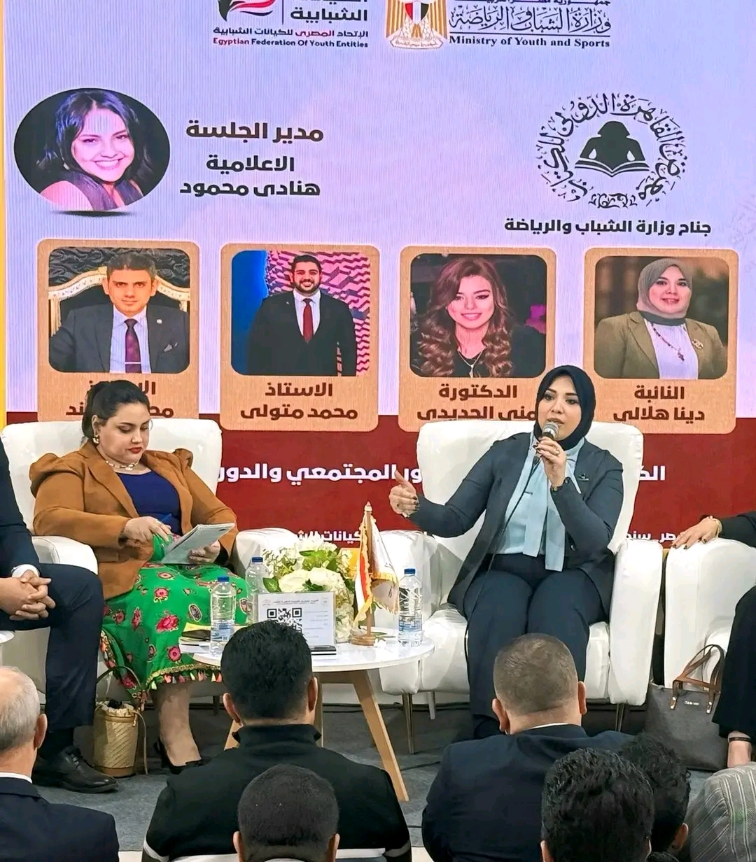 وأدارت الجلسة هنادي محمود، بمشاركة نخبة متميزة من المتحدثين ضمّت النائبة دينا هلالي عضو مجلس النواب، والدكتورة منى الحديدي، والأستاذ محمد متولي، والأستاذ محمود سند، حيث استعرضوا تجاربهم ورؤاهم حول آليات تفعيل دور الكيانات الشبابية وتعظيم إسهامها في المجالين المجتمعي والسياسي، مؤكدين أهمية رفع وعي الشباب بقضايا الوطن، وترسيخ ثقافة الحوار، وتعزيز قيم المسؤولية والانتماء.