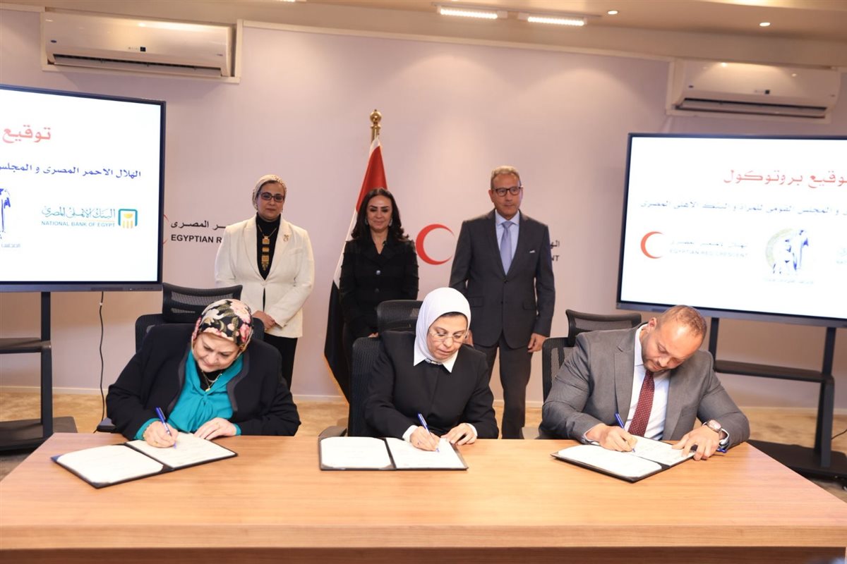 ووقعت البروتوكولين كل من إيمان خليفه أمل الامينة العامة للمجلس القومي للمرأة، والدكتورة آمال امام المدير التنفيذي للهلال الاحمر المصرى، ومحمد عوارة مدير التنمية المجتمعية بالبنك الاهلى المصرى.