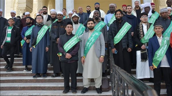 متسابقو بورسعيد الدولية يؤدون صلاة الجمعة بمسجد السلام وينشدون بساحة المسجد