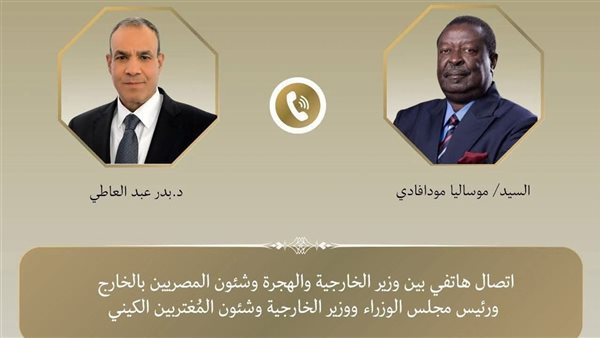 تطرق اتصال هاتفي، بين د. بدر عبد العاطي، وزير الخارجية والهجرة وشئون المصريين بالخارج، والدكتور موساليا مودافادي، رئيس مجلس الوزراء وزير الخارجية وشئون المغتربين الكيني، لبحث سبل تعزيز العلاقات الثنائية بين البلدين الشقيقين في مختلف المجالات وتنسيق المواقف إزاء القضايا ذات الاهتمام المشترك.