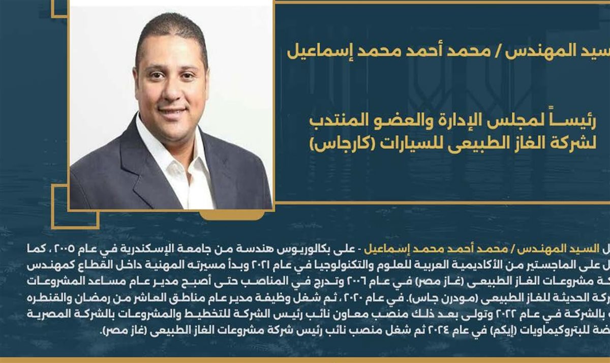 المهندس محمد إسماعيل رئيسًا لشركة الغاز الطبيعي للسيارات "كارجاس"