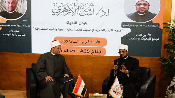 عقد جناح المجلس الأعلى للشئون الإسلامية ندوة فكرية بجناحه ضمن فعاليات معرض القاهرة الدولي للكتاب، بعنوان: «منهج الأزهر الشريف في تفكيك الفكر المتطرف.. رؤية واقعية استشرافية»، وذلك برعاية كريمة من أ.د. أسامة الأزهري - وزير الأوقاف، وبإشراف الأستاذ الدكتور أحمد نبوي - الأمين العام للمجلس الأعلى للشئون الإسلامية.