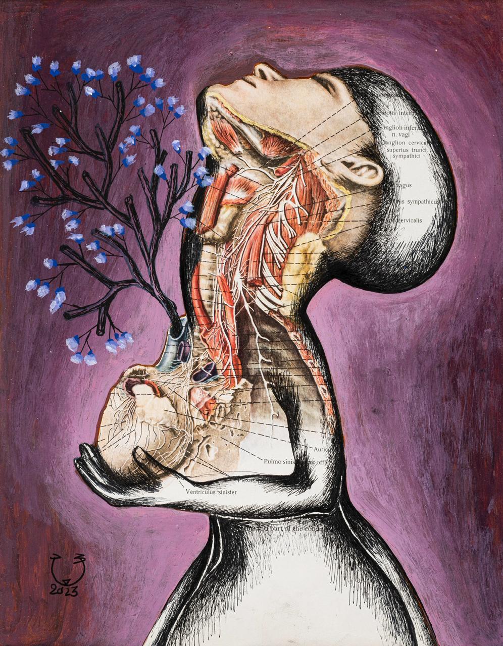 ومن خلال أجساد متحوّلة وكائنات في حال صيرورة دائمة، لا تبحث سعاد عن تمثيل الجمال الجسدي للإنسان، بل عن مساءلة علاقته بعناصر الوجود الأولى: الأرض، الماء، والنبات.