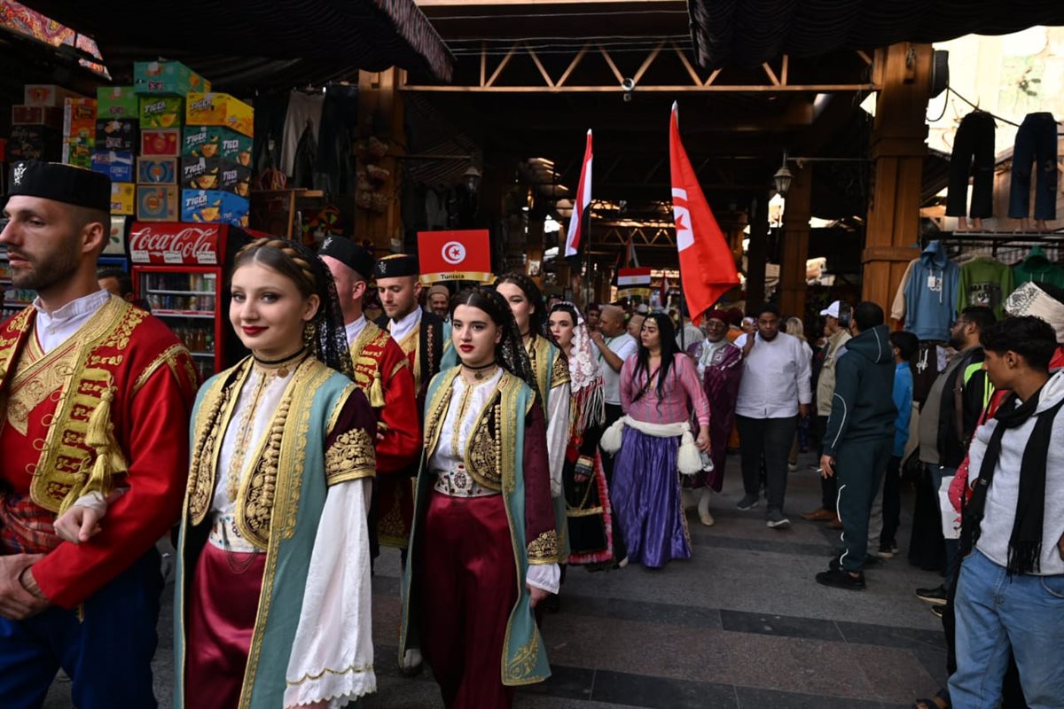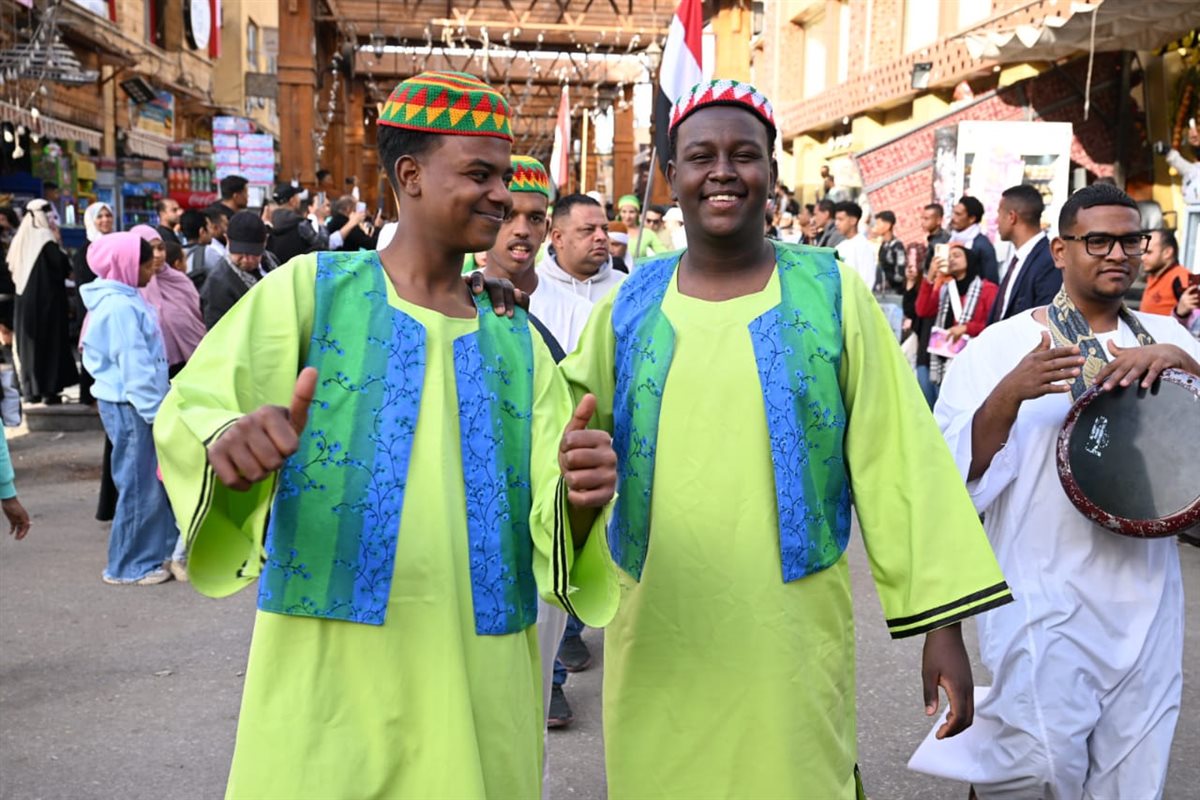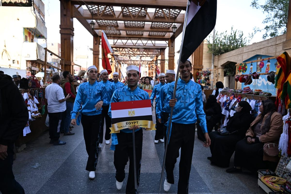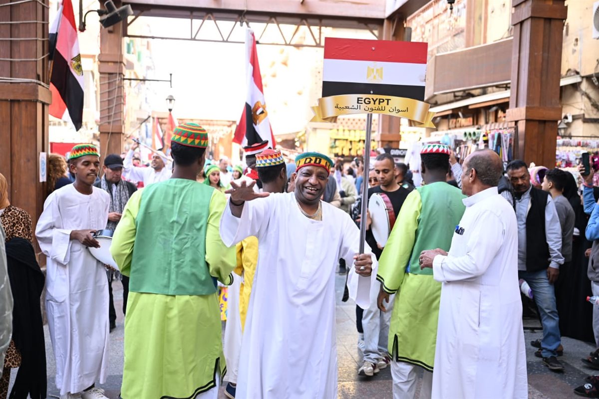 ـ رئيس قصور الثقافة ونائب محافظ أسوان يشهدان ديفيليه المهرجان الدولي للفنون الشعبية بالسوق السياحي