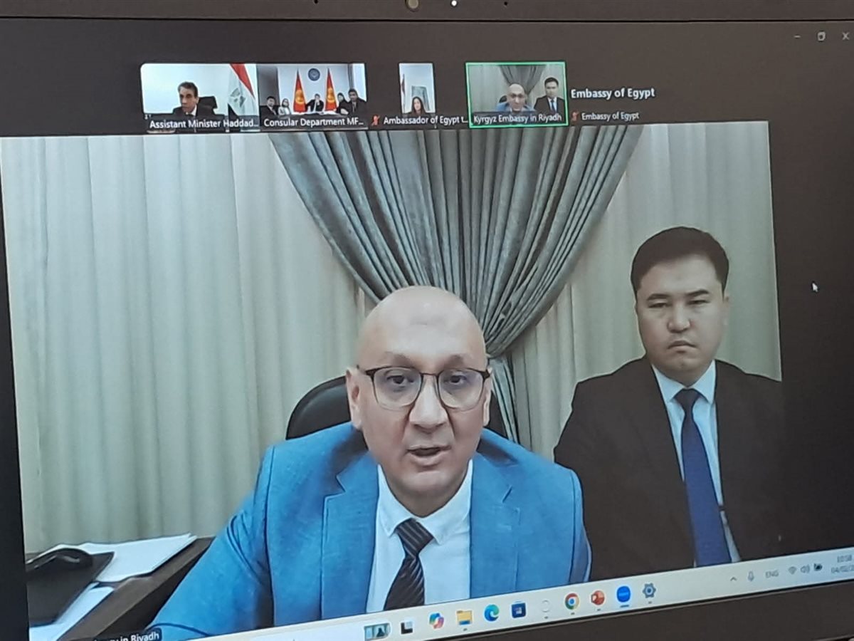 عقد السفير حداد عبدالتواب الجوهري، مساعد وزير الخارجية للشئون القنصلية والمصريين في الخارج، أول جولة مشاورات قنصلية بين مصر وقيرقيزستان بتقنية الاتصال المرئي، حيث ترأس وفد قرقيزستان وفد رفيع المستوى برئاسة مدير الإدارة القنصلية بوزارة الخارجية القيرقيزية.