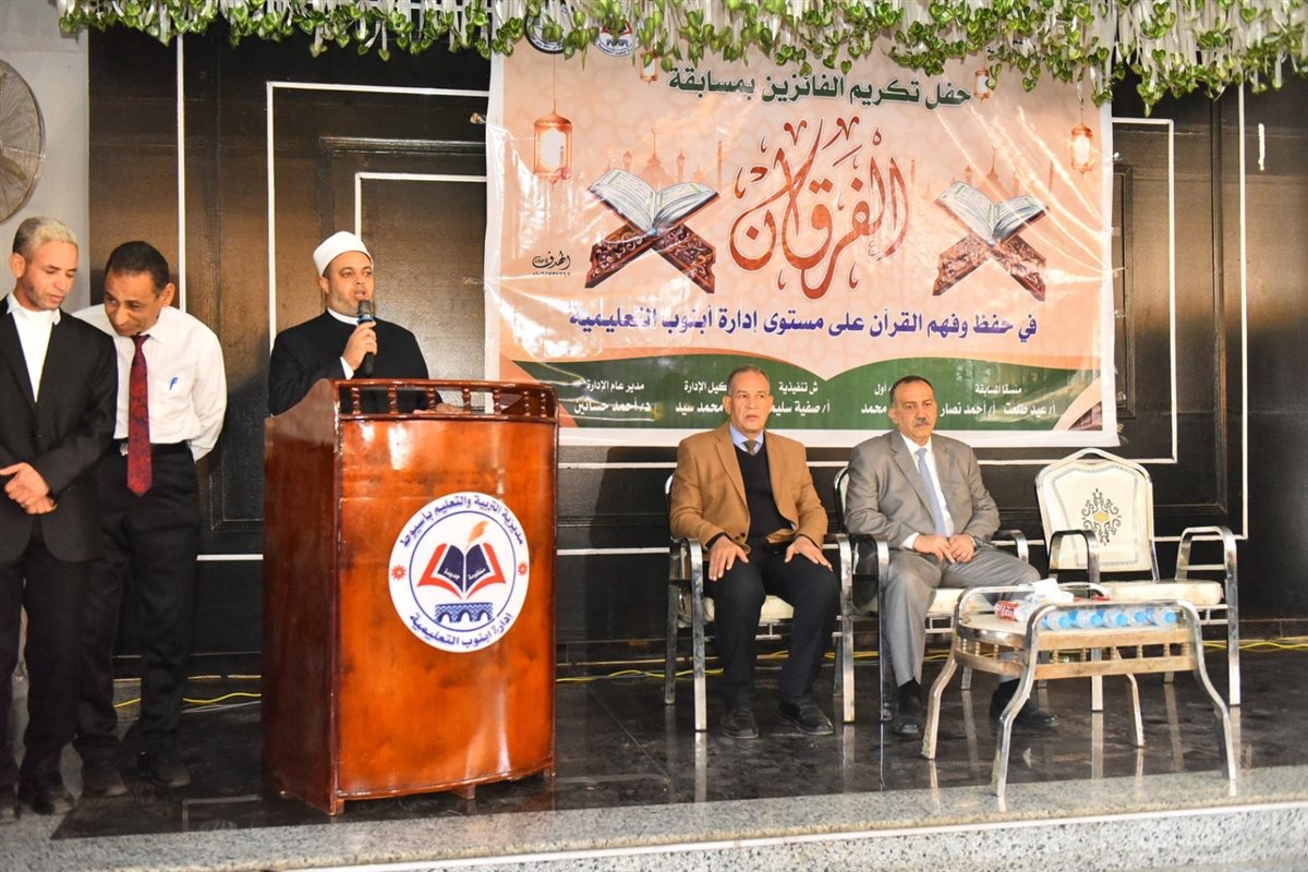 جاء ذلك بحضور محمد إبراهيم دسوقي وكيل وزارة التربية والتعليم بأسيوط، وفضيلة الشيخ الدكتور عيد خليفة وكيل وزارة الأوقاف، وأحمد عبد الله وكيل المديرية، ومصطفى علي رئيس مركز أبنوب، وسيد الشريف مدير عام الشئون التنفيذية، والدكتور أحمد حسانين بحر مدير إدارة أبنوب التعليمية، إلى جانب قيادات تنفيذية وتعليمية وأولياء الأمور والطلاب المكرمين.