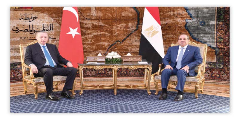 على الصعيد الثنائى، استوقفتنى رسائل التقدير التى تحدّث بها الرئيس التركى لمصر وللرئيس السيسي، فى كلمته بالمؤتمر الصحفى، وهى معانٍ تعكس واقع العلاقات الحالية، بعد مَرحلة من التوتر امتدت لنحو اثنى عشر عامًا، غير أن مناسبة القمّة جاءت بعد احتفال البلدَيْن العام الماضى، بمئوية العلاقات الدبلوماسية؛ حيث يتقاطع جزءٌ من تاريخ تركيا مع تاريخ مصر.